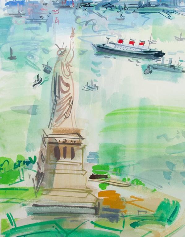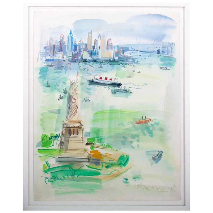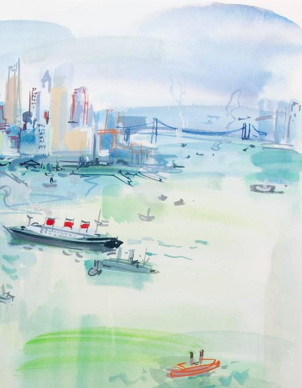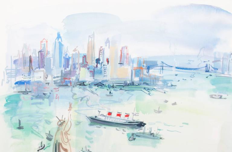 1960s Watercolor Vista of New York City by Roger Bertin