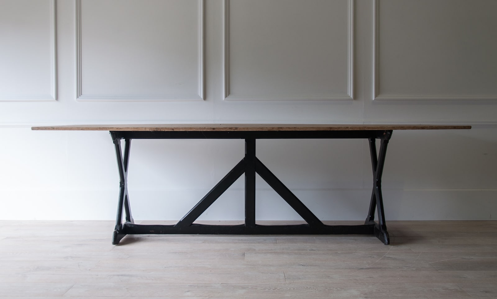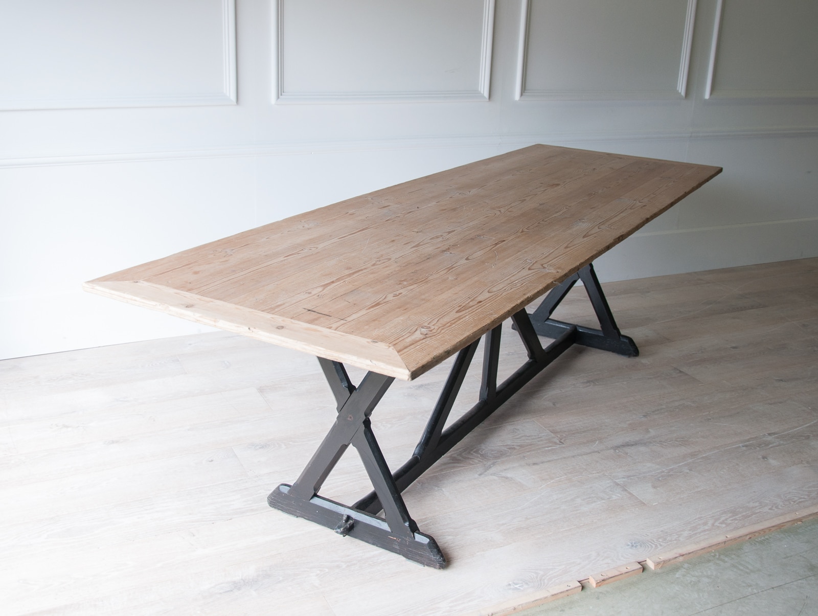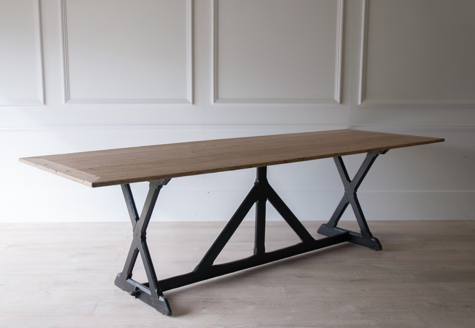 A large refectory table on ebonised supports