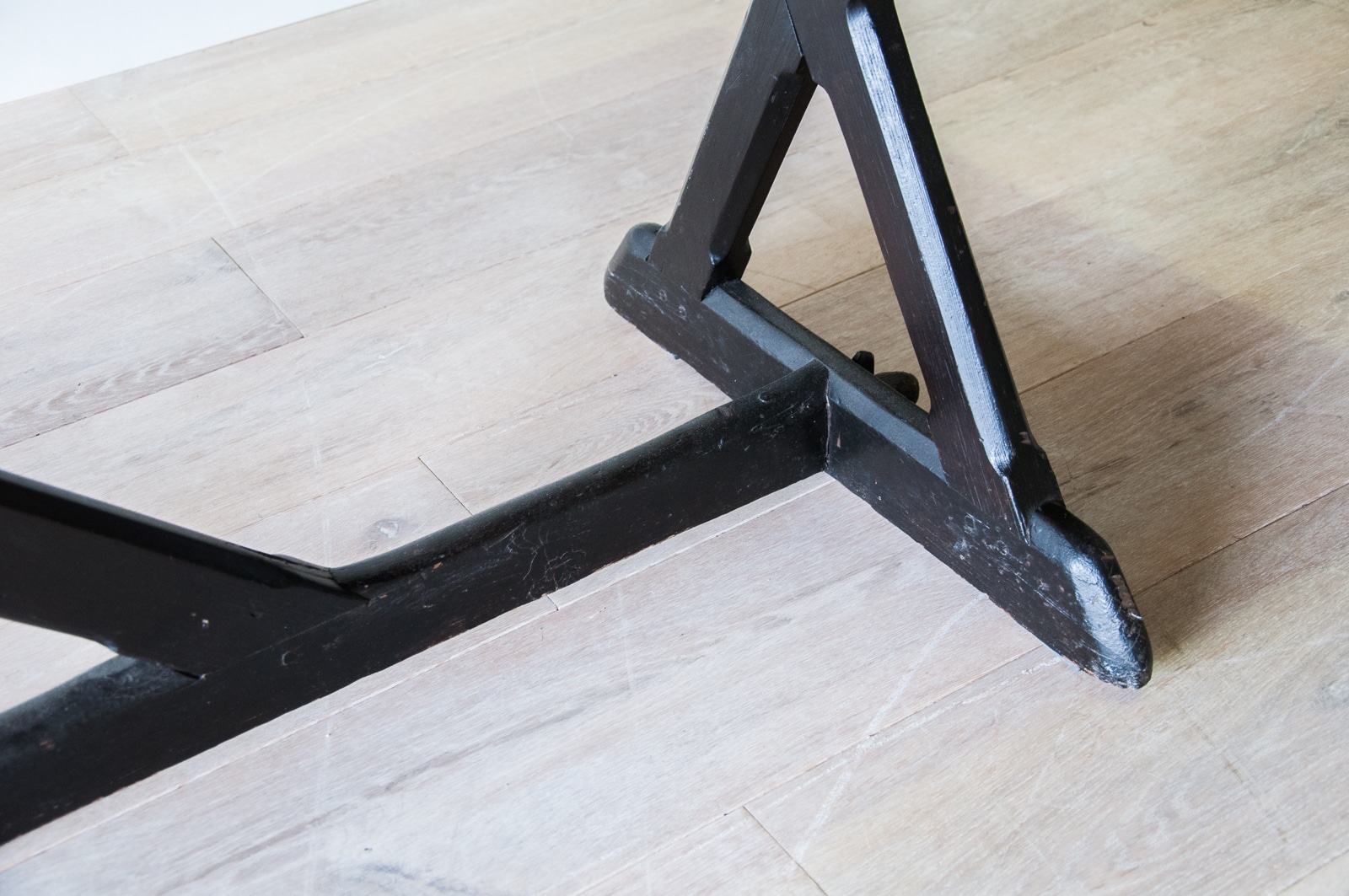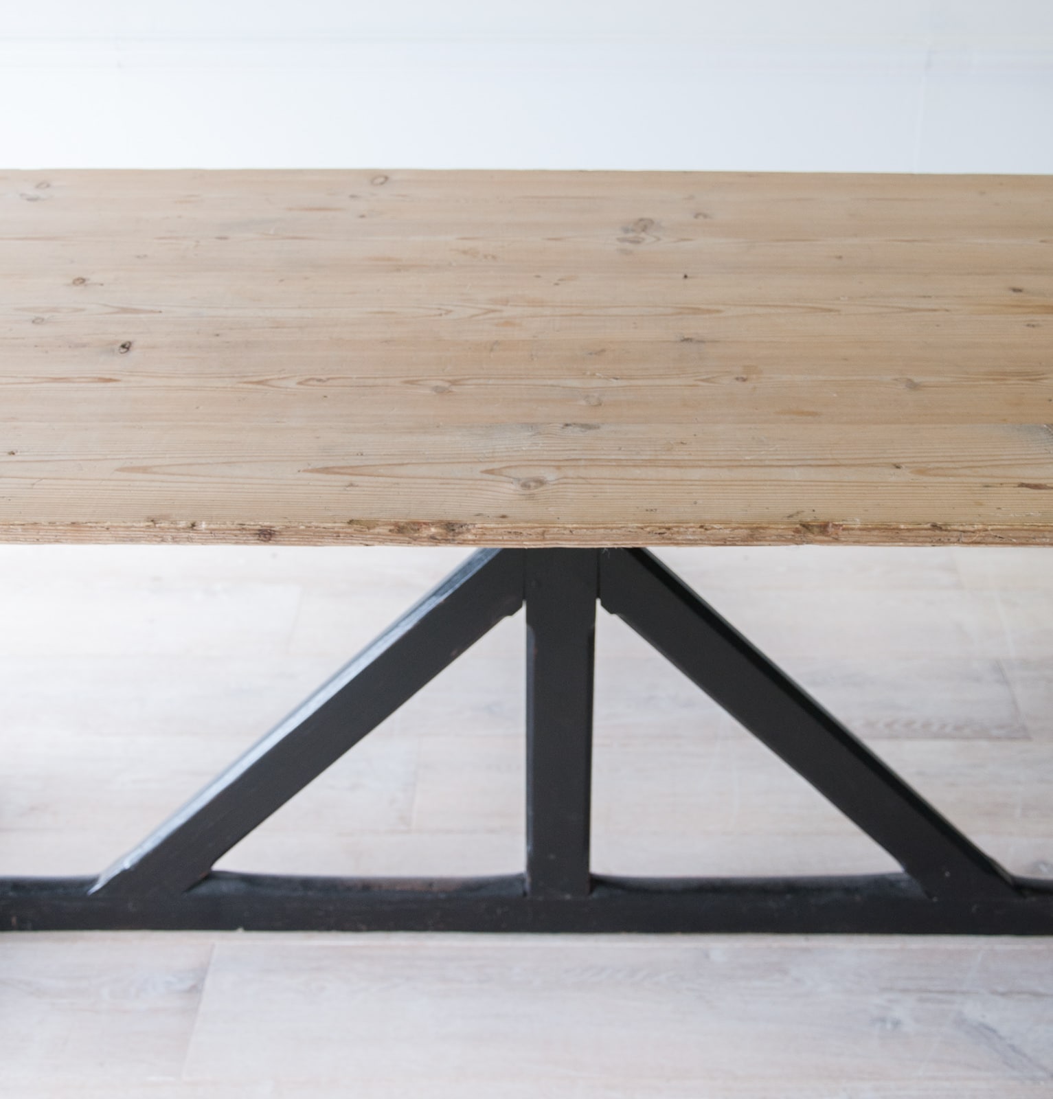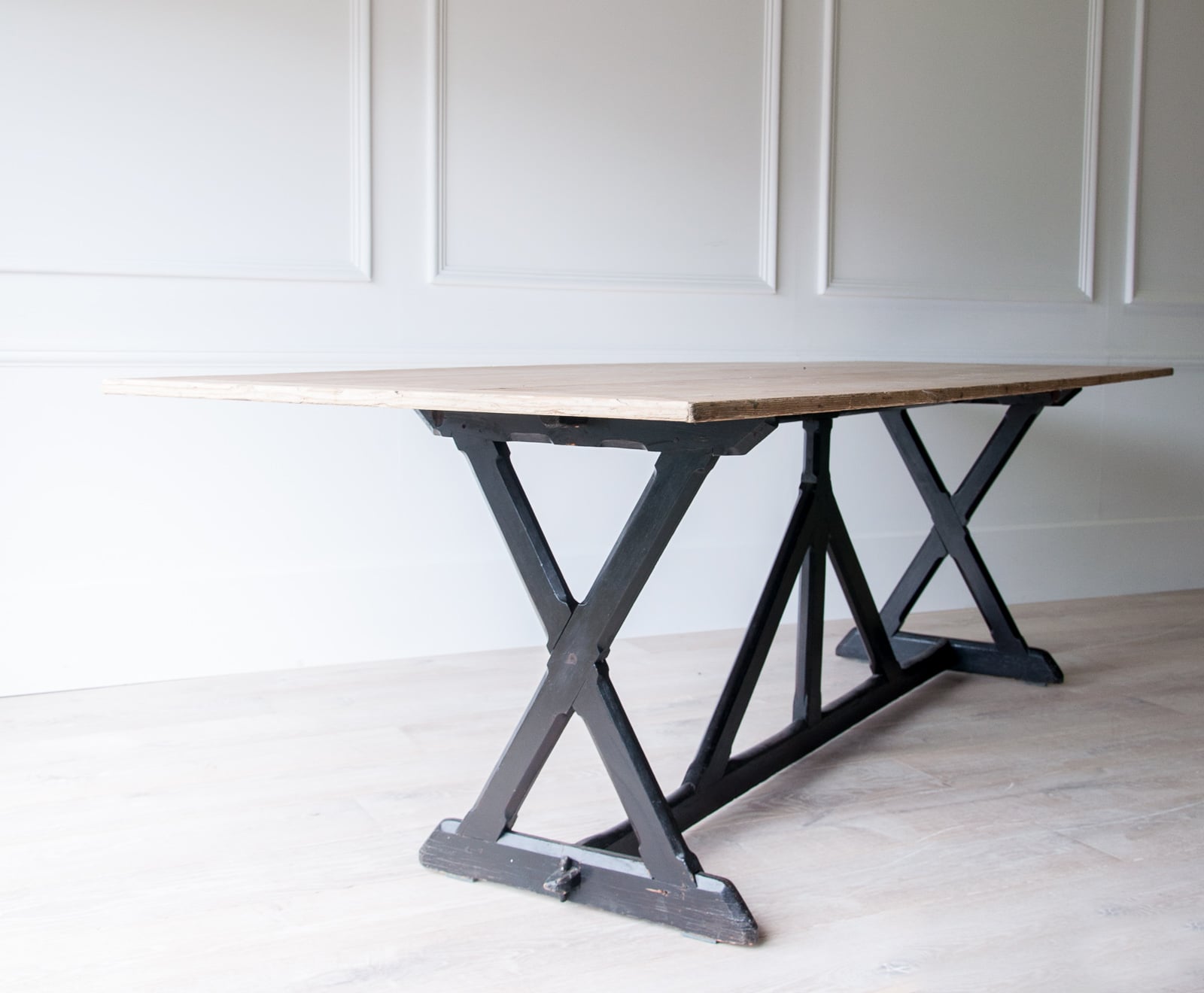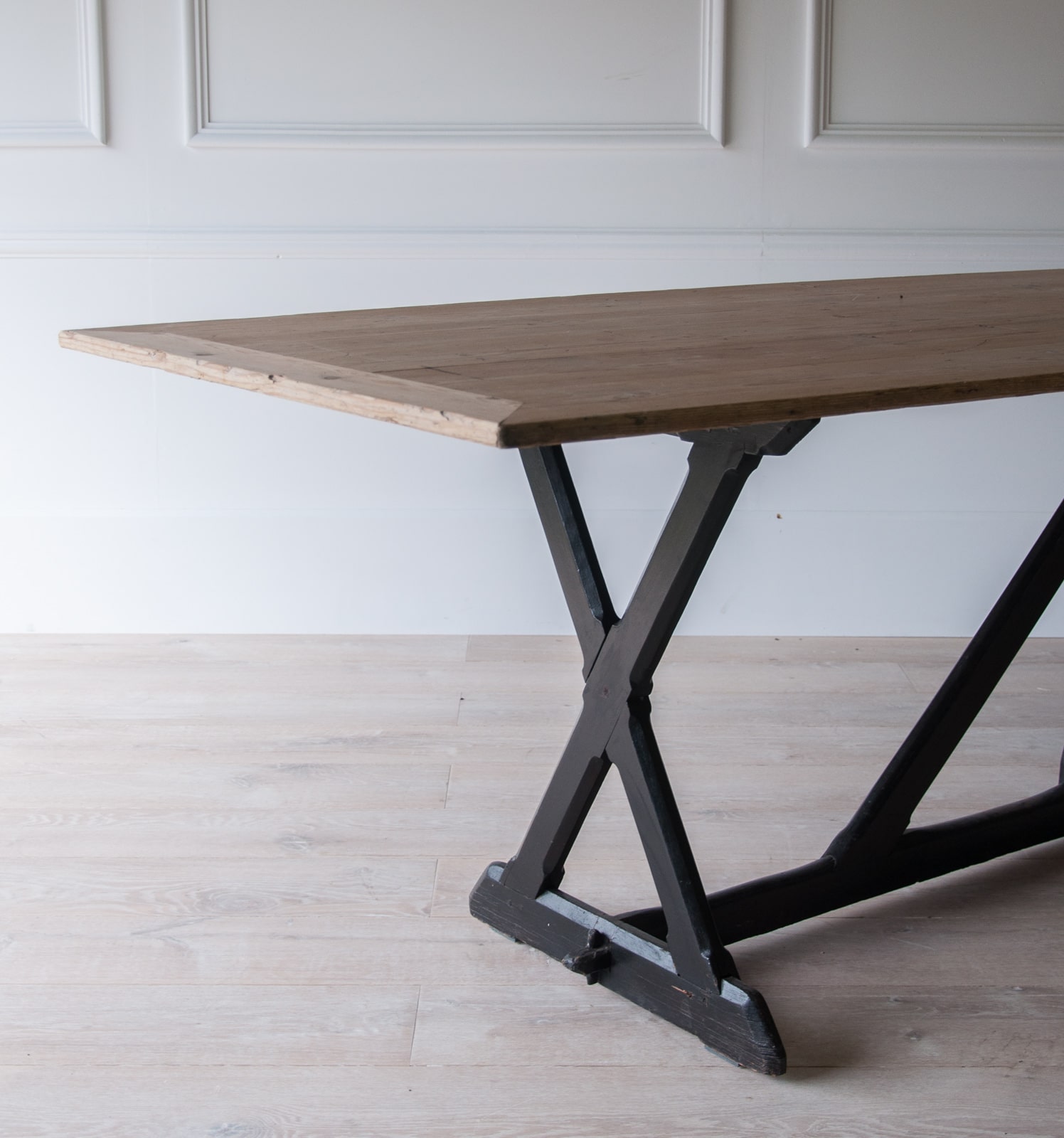 A large refectory table on ebonised supports