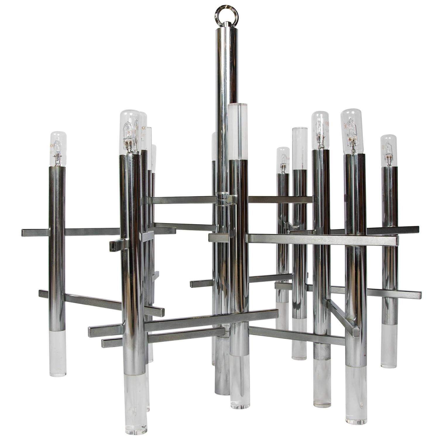 Gaetano Sciolari modernist nine light Chrome and Lucite Chandelier