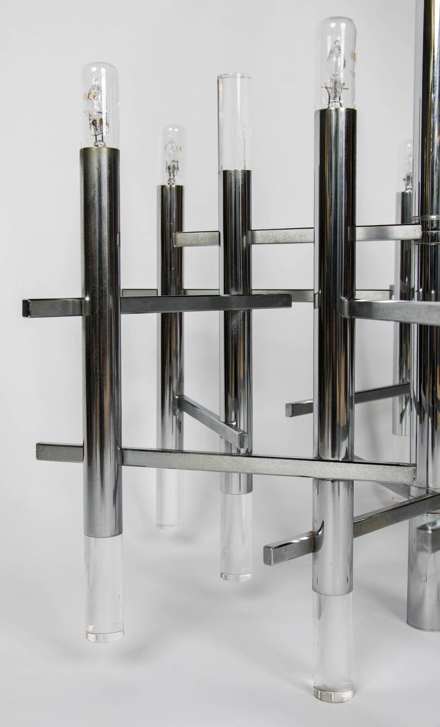 Gaetano Sciolari modernist nine light Chrome and Lucite Chandelier2