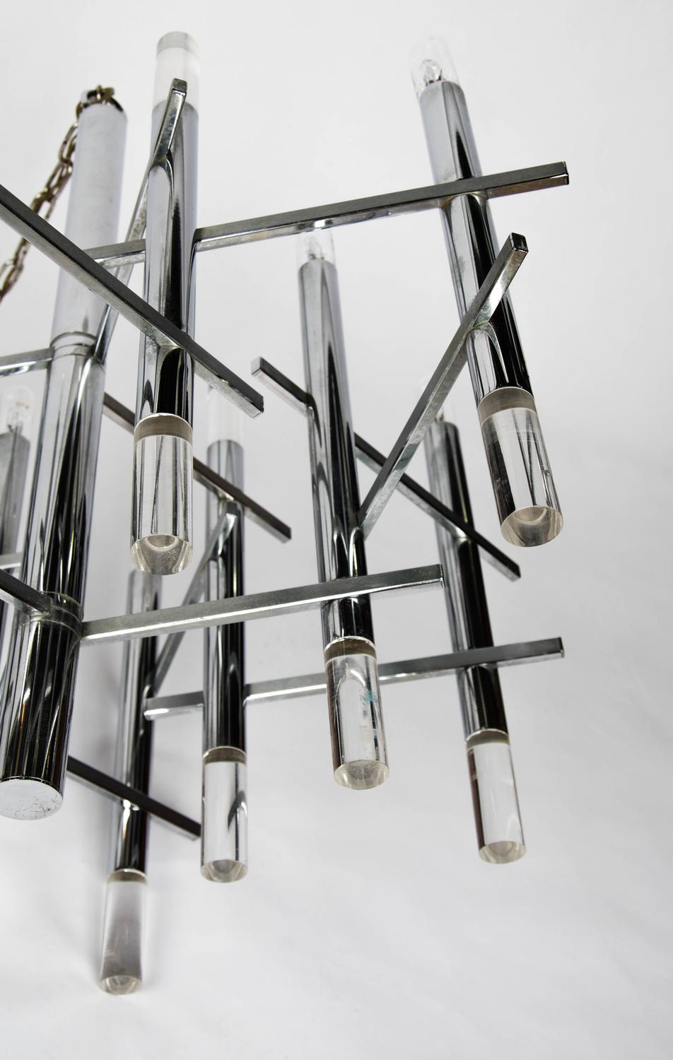 Gaetano Sciolari modernist nine light Chrome and Lucite Chandelier4