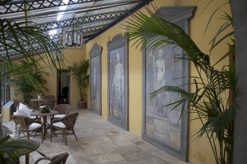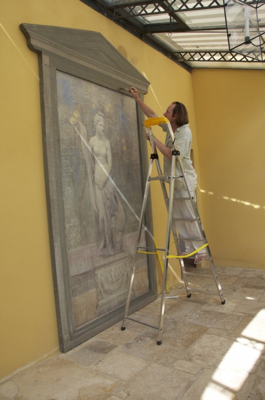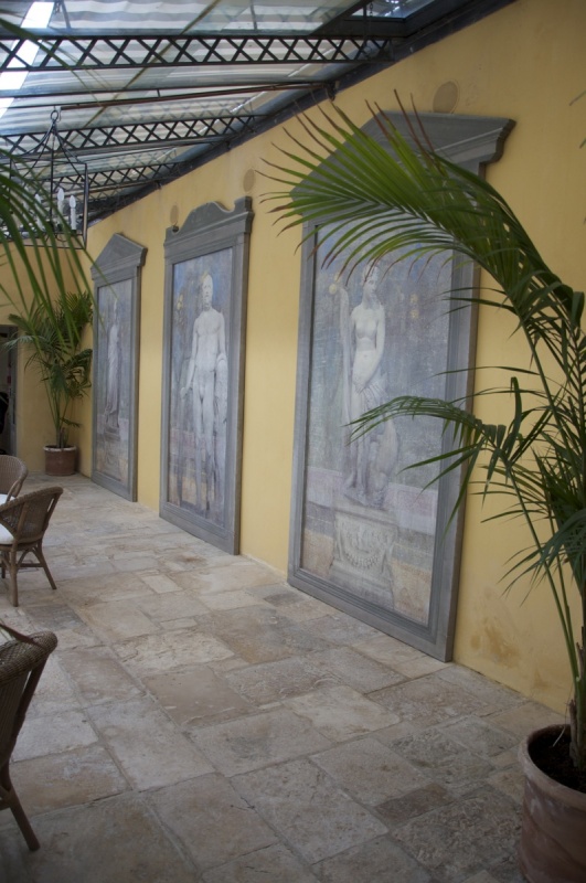 A series of murals installed in the orangerie at Palazzo Terranova by Peter Woodward