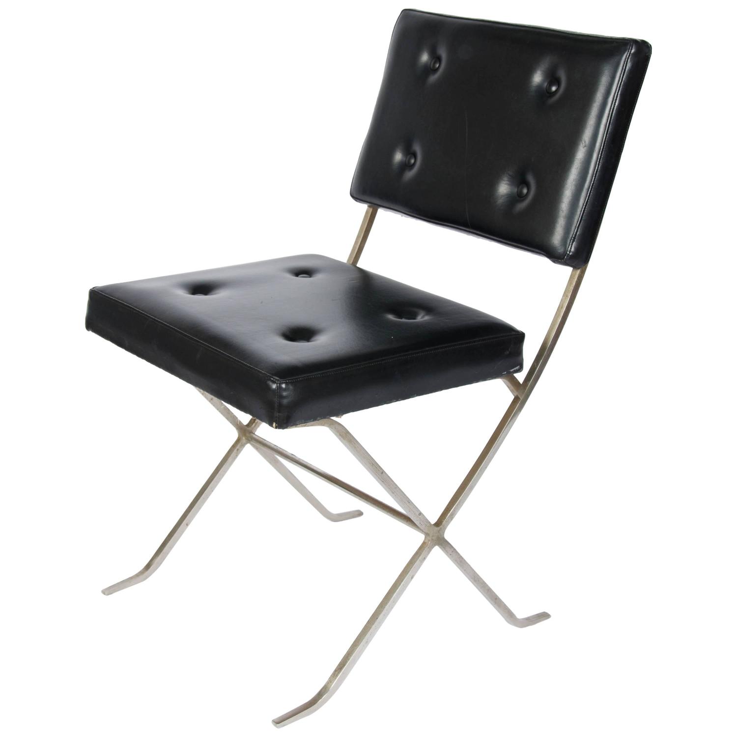 Rare Maison Charles silvered steel side chair
