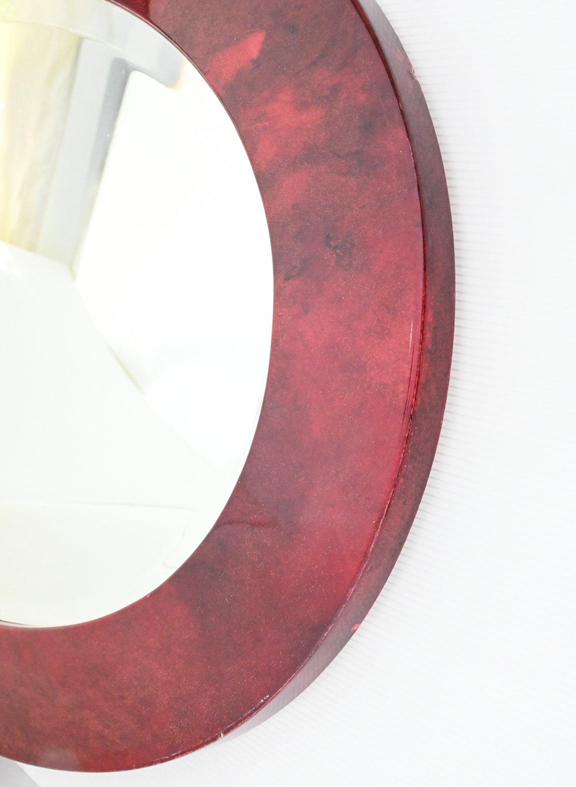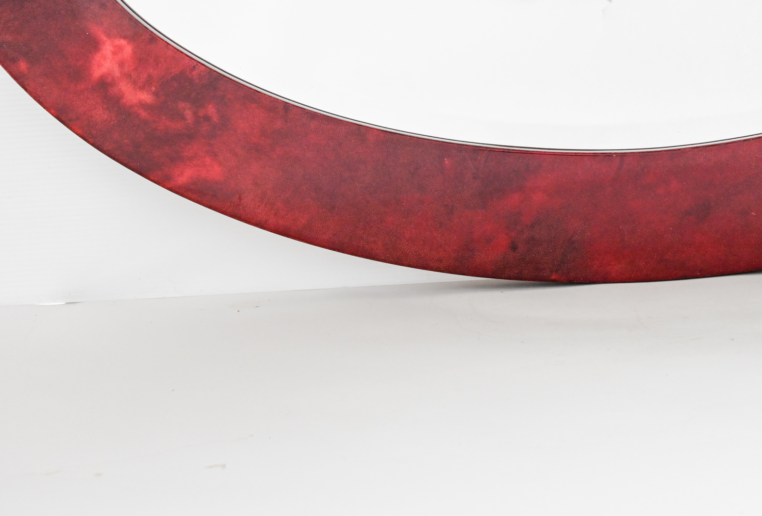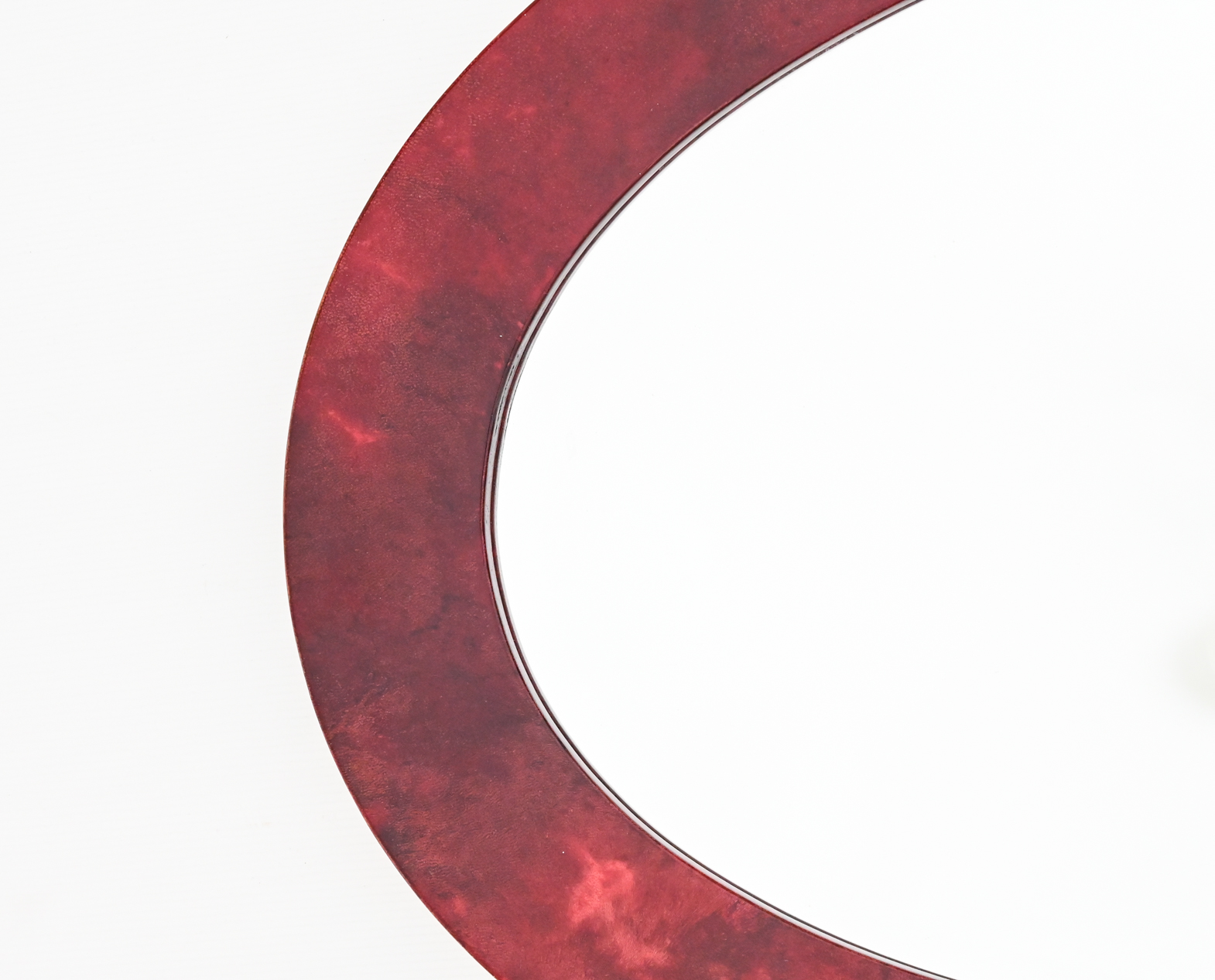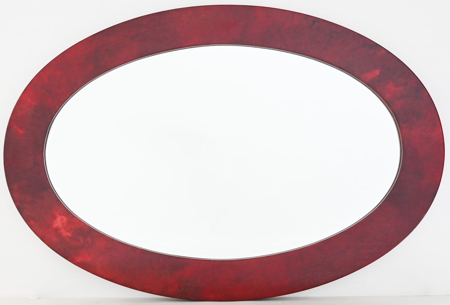Oval mirror in lacquered goatskin by Aldo Tura