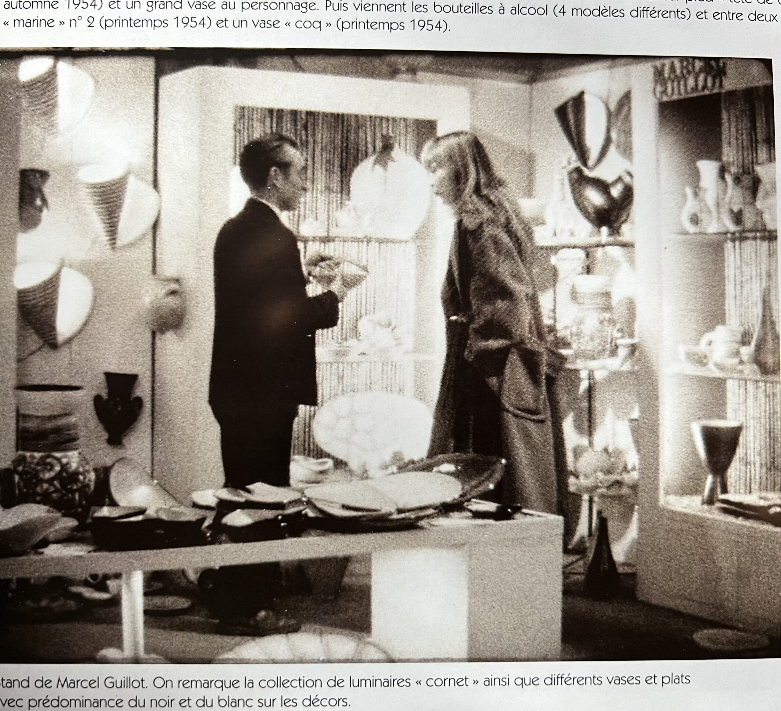 He campaigned for his profession in the Chamber of Trade Unions and in 1949, he was tasked with Pol Chambost to organise the first (commercial) Salon des ceramists d’art de France. The Salon presented 59 exhibitors from September 19 to 26, 1949. The Salon continued to grow over the years. From 1953, he had the opportunity to see a setting by Matégot and the works of Lacaf, Fouquet, Mallet, Jouve… and in 1954: Gatard, Deblander, Blin, Pierlot, Baud, Capron, Innocenti, Picault & le Grand Chene