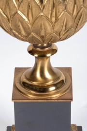 Fine pair of Maison Charles Table lamps of Artichoke form, solid bronze, each stamped “Charles” & “Made in France” to the base. Complete with the original metal shades. Circa 1960 (Fully rewired.)
