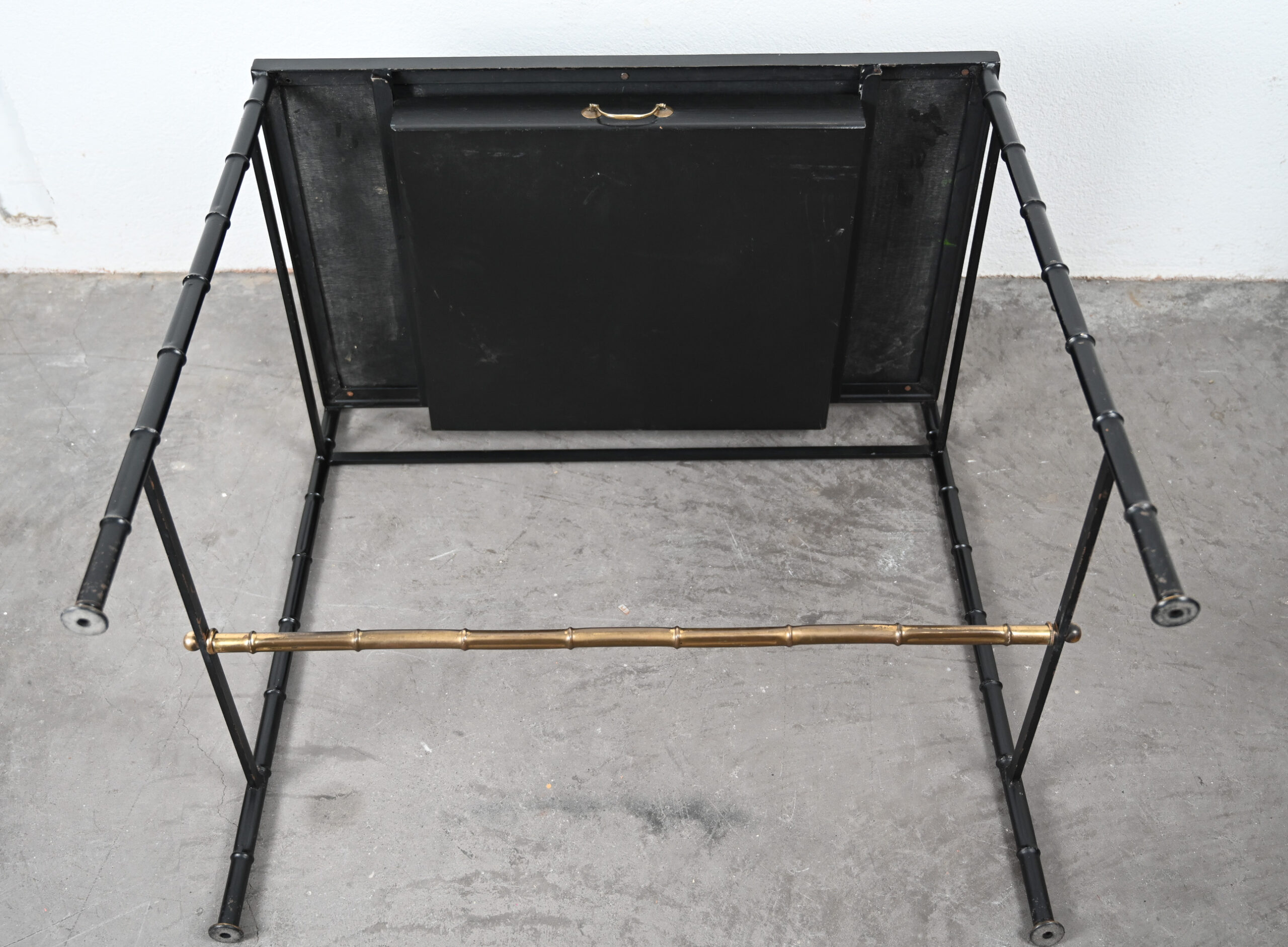 Jacques Adnet style black and brass faux bamboo table 19