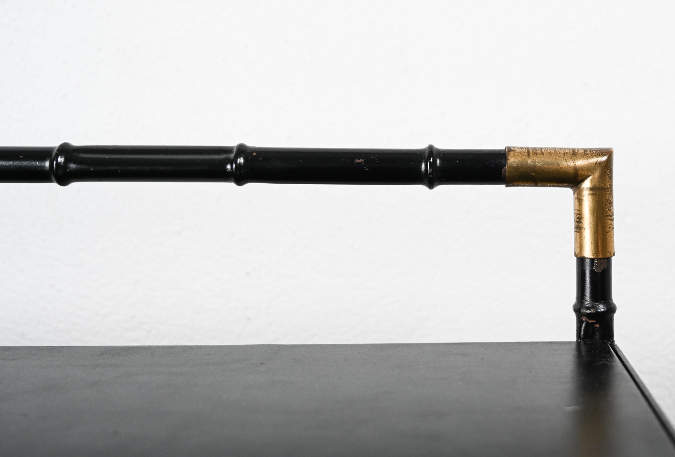 Jacques Adnet style black and brass faux bamboo table 02