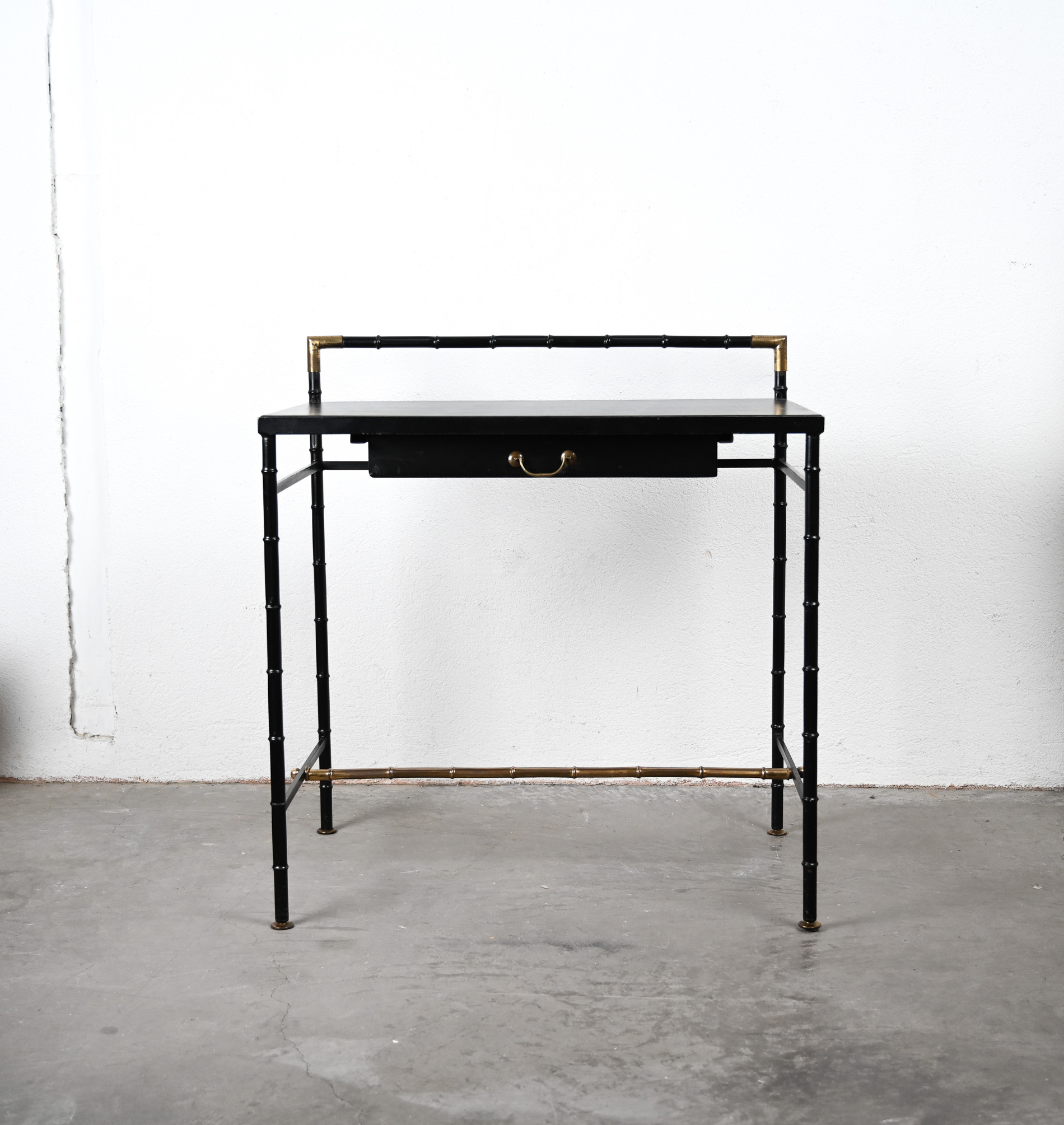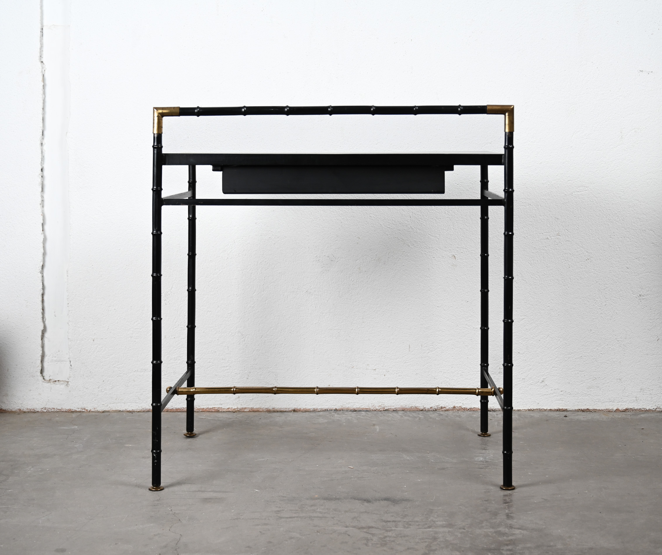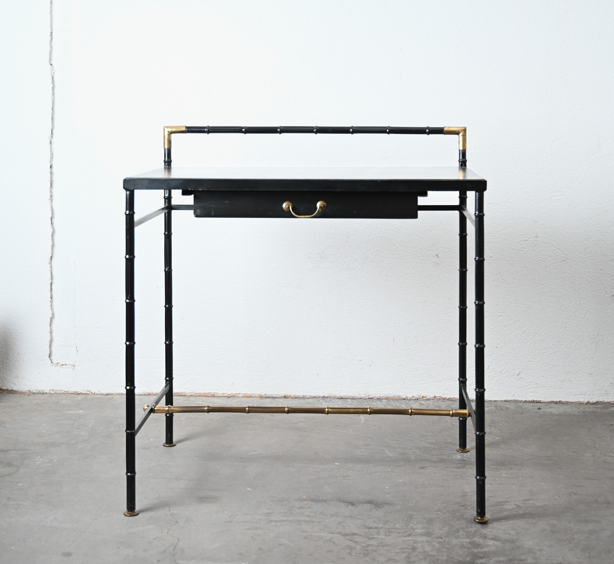Jacques Adnet style black and brass faux bamboo table 08
