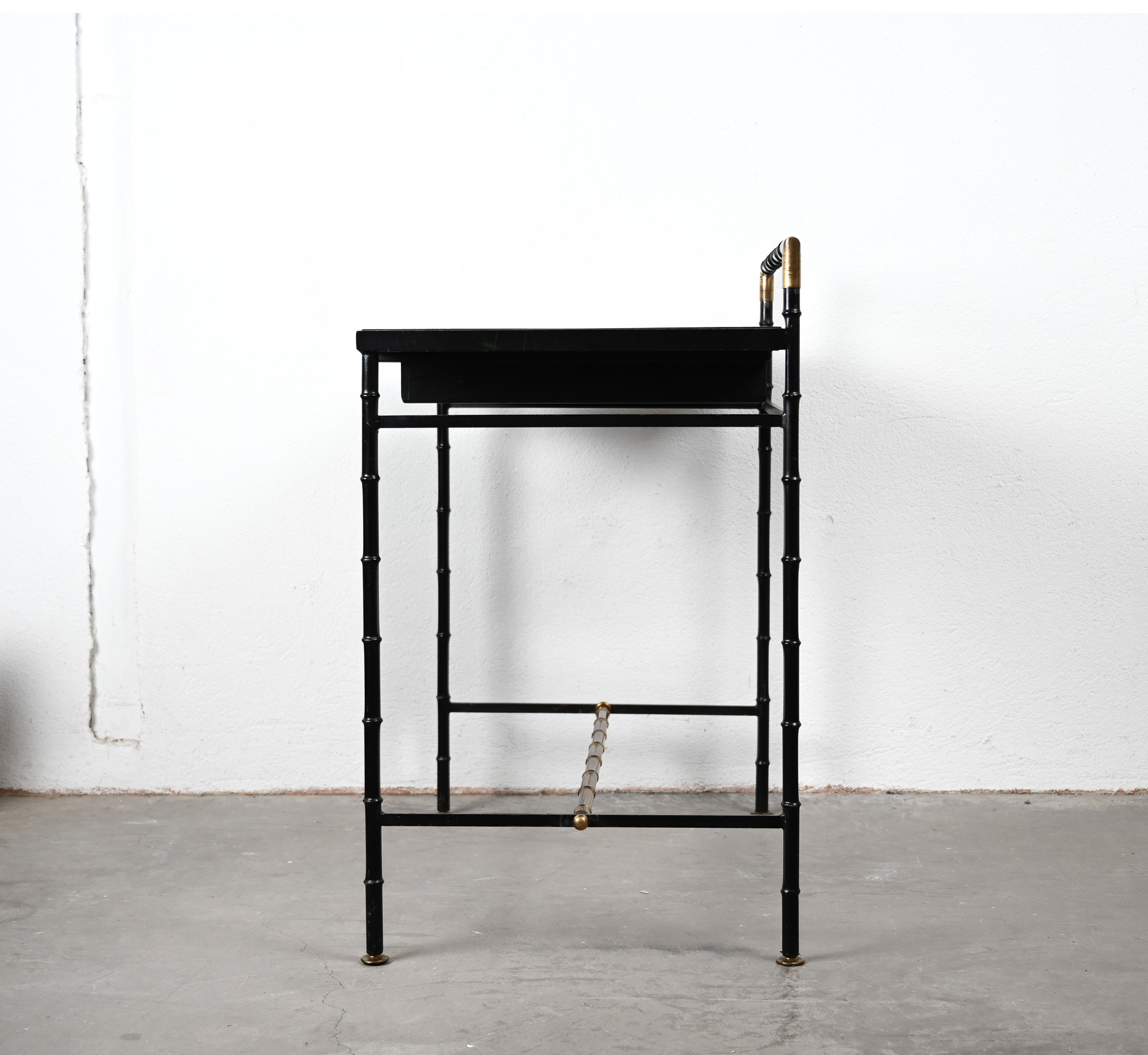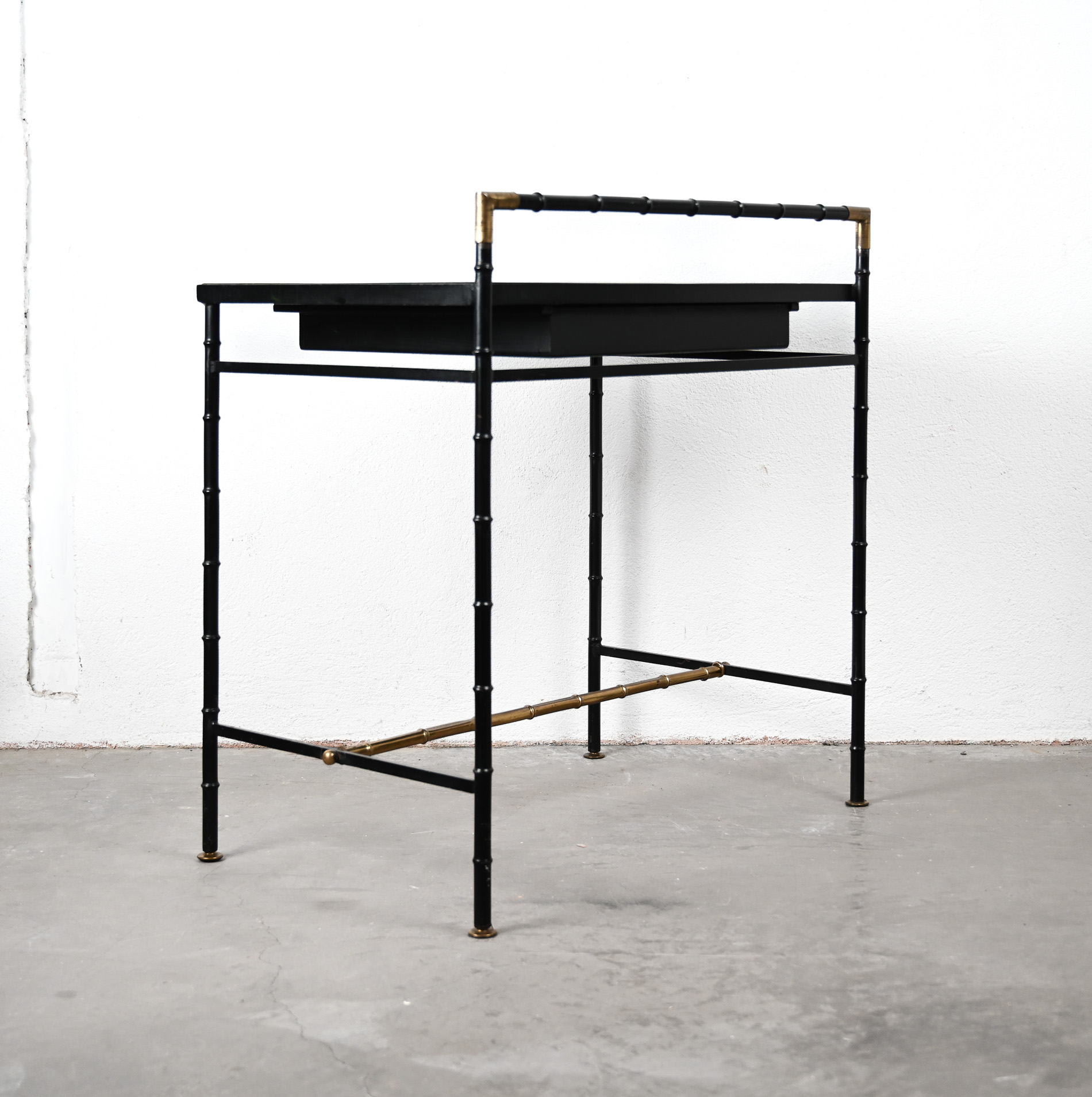 Jacques Adnet style black and brass faux bamboo table 04