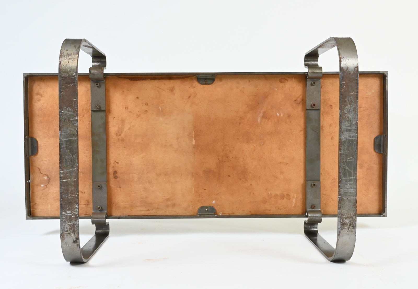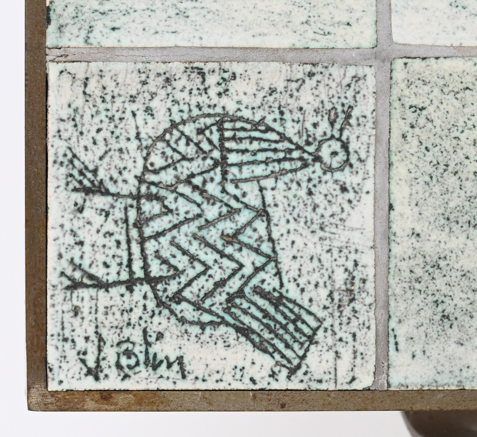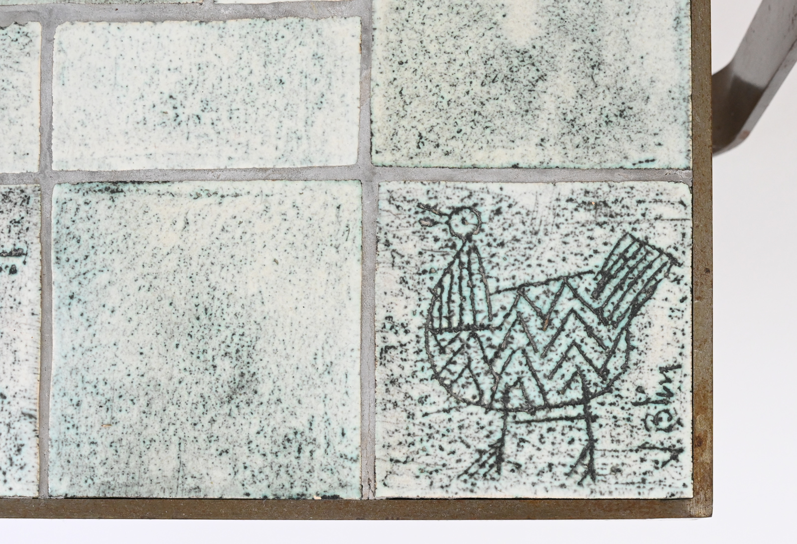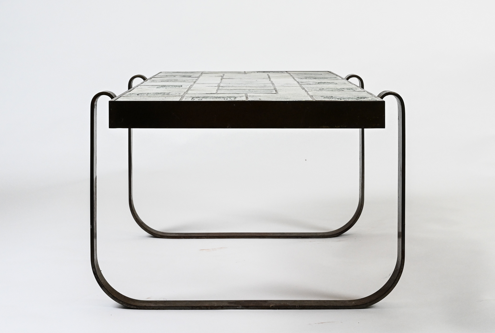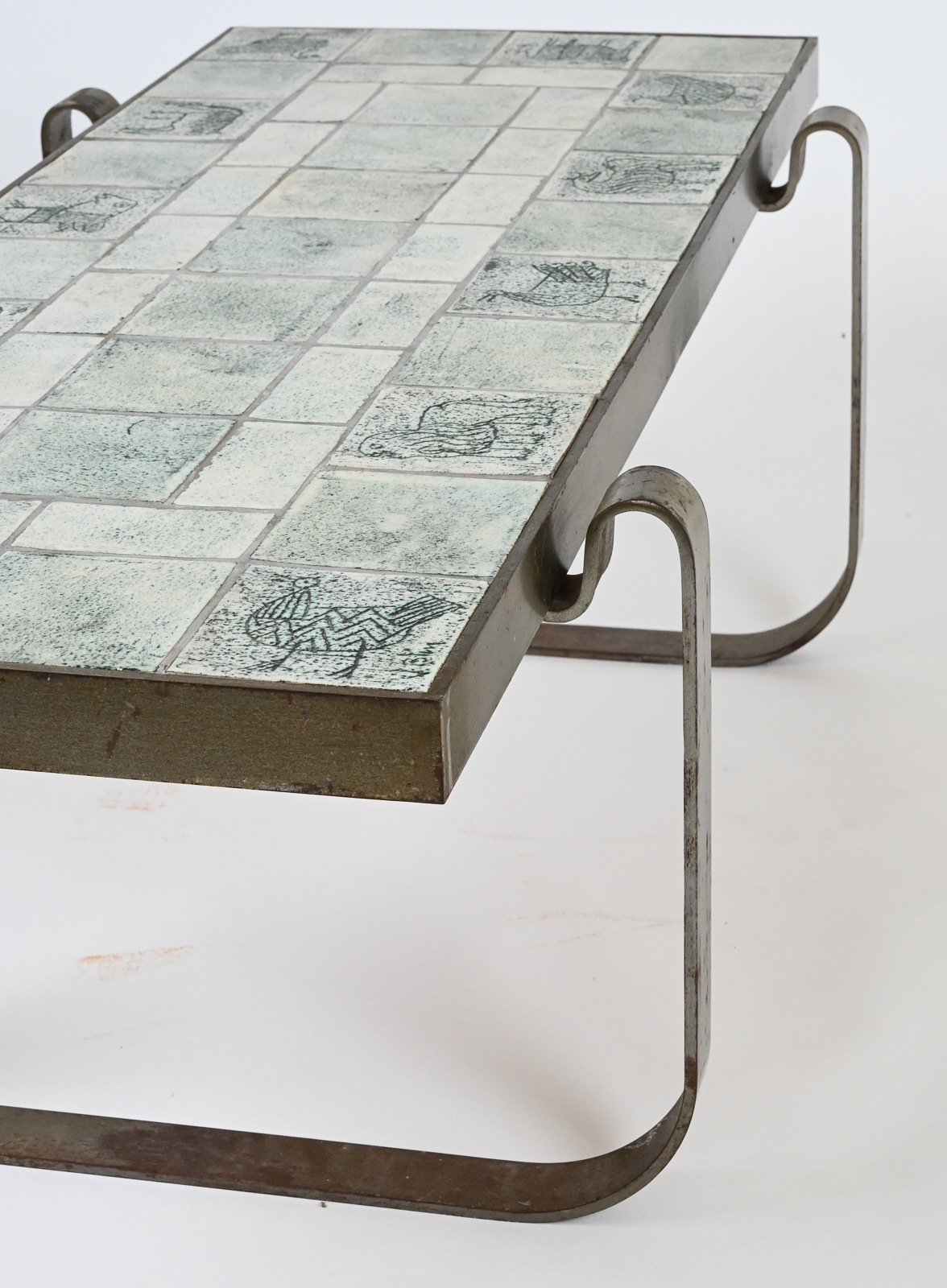 Rare modernist mid century steel-framed low table composed of ceramic tiles of animals by Jacques Blin.