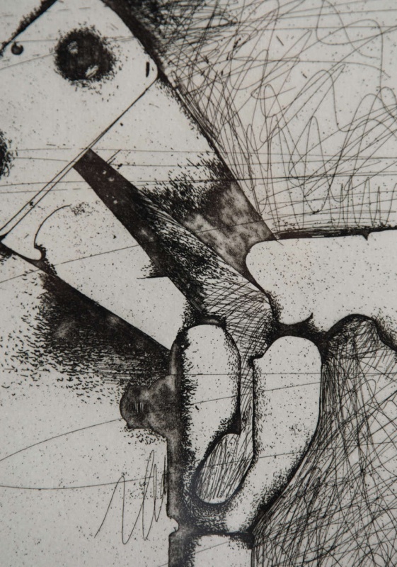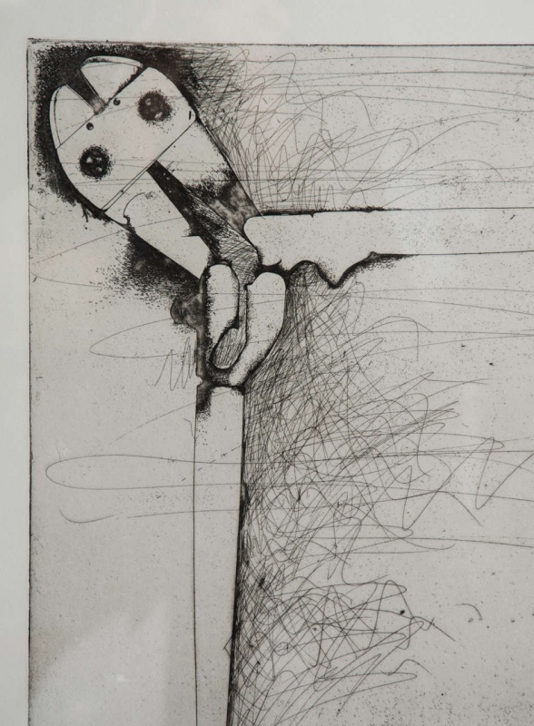 There was also a second edition of Jim Dine bolt cutters (second state) using the same plate rotated with aquatint and etching lines added. The second edition was printed by Petersburg Press in New York.