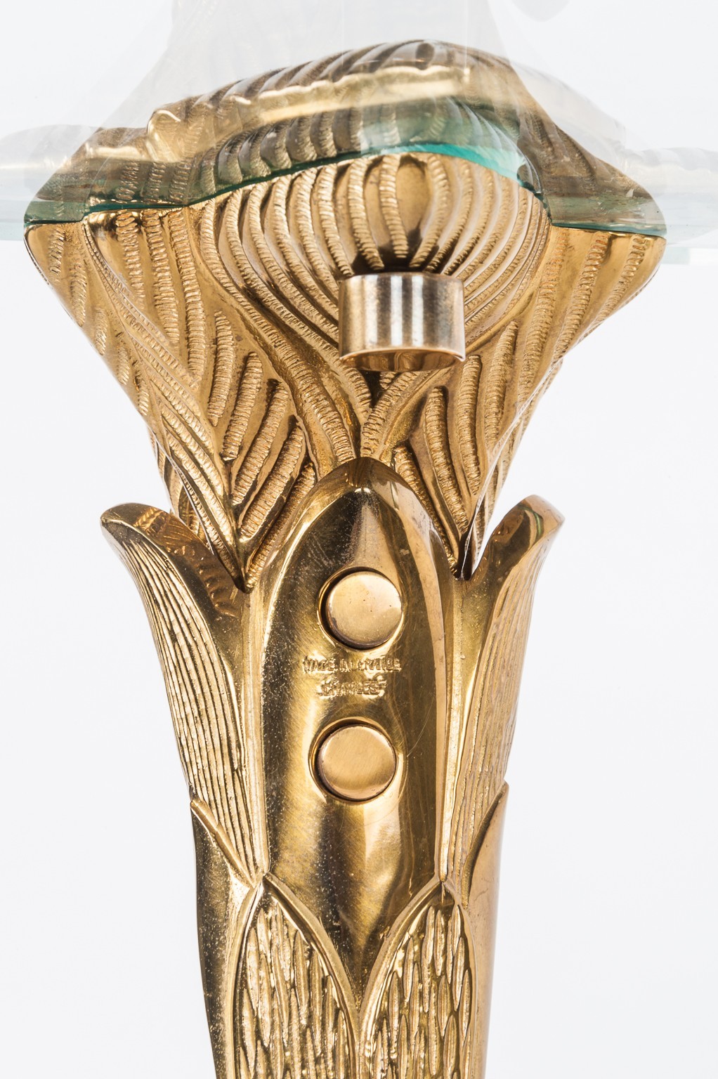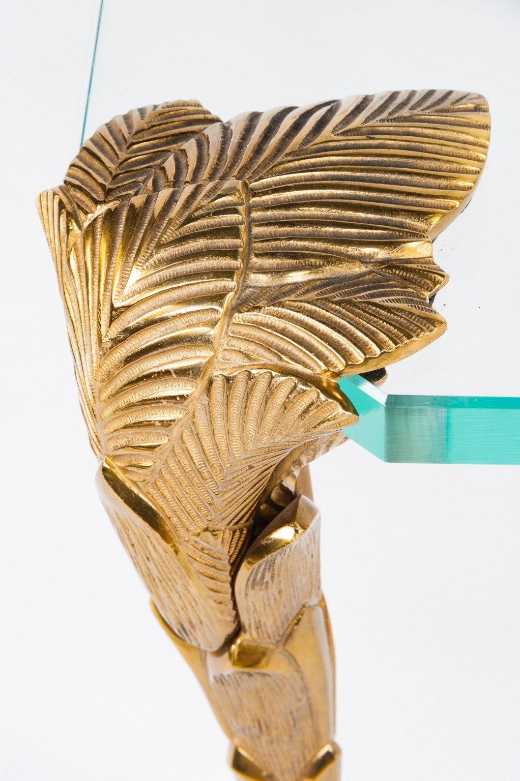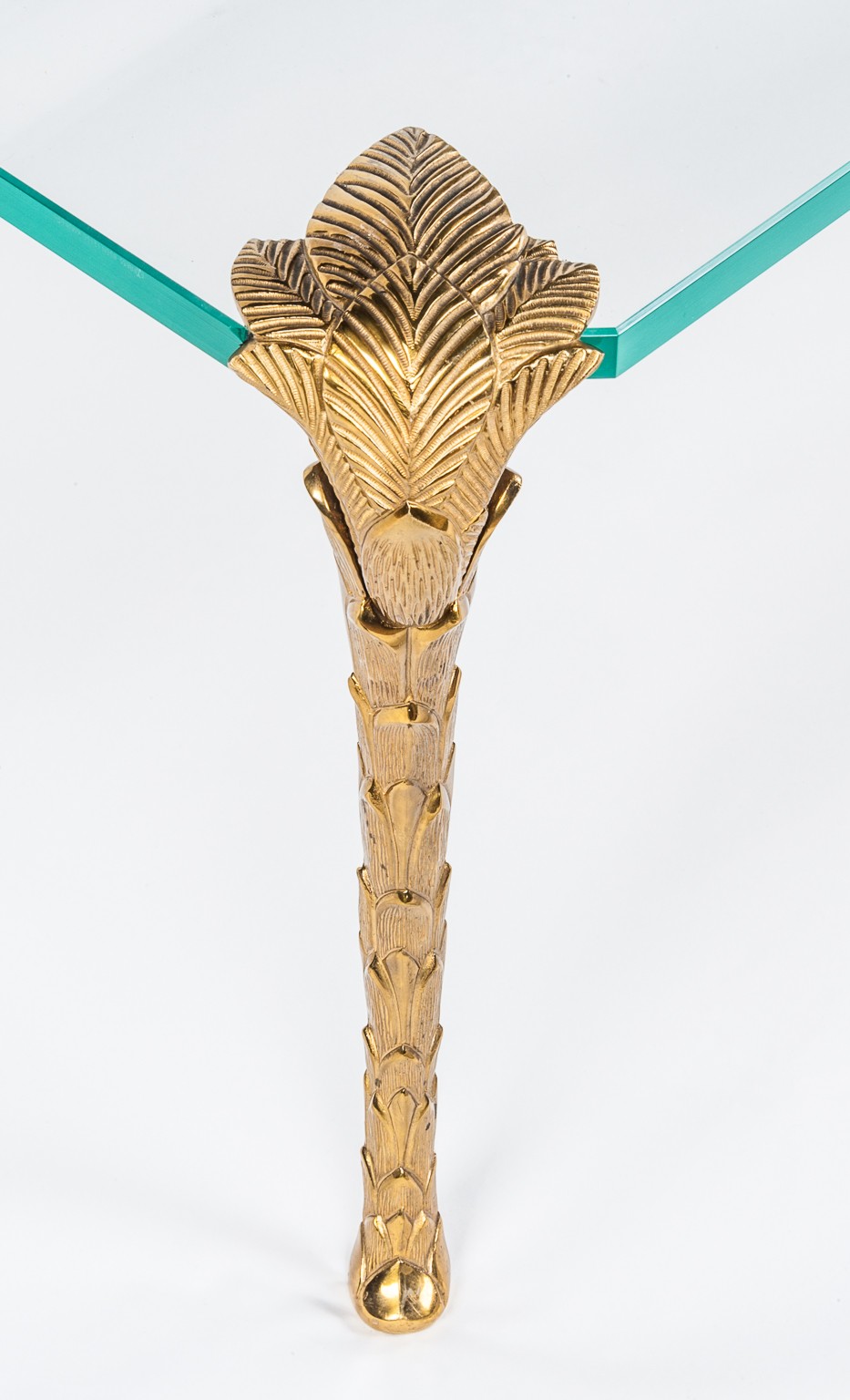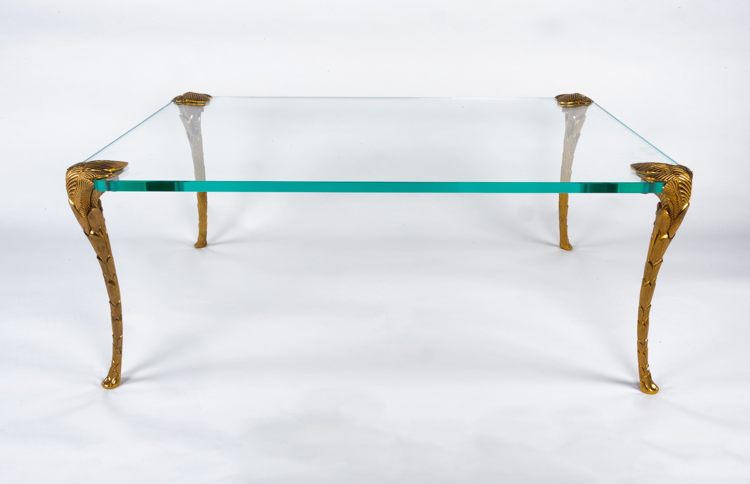 Maison Charles pieds palme low table, gold plated bronze and glass, circa 1978 Stamped “Charles” “Made in France” to each leg Provenance: The estate of Chrystiane Charles