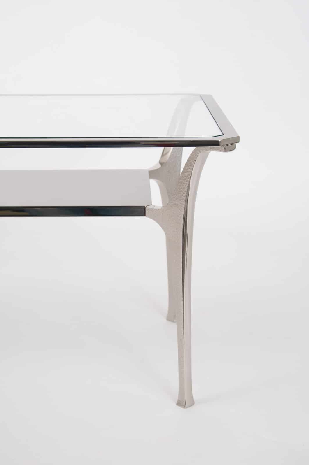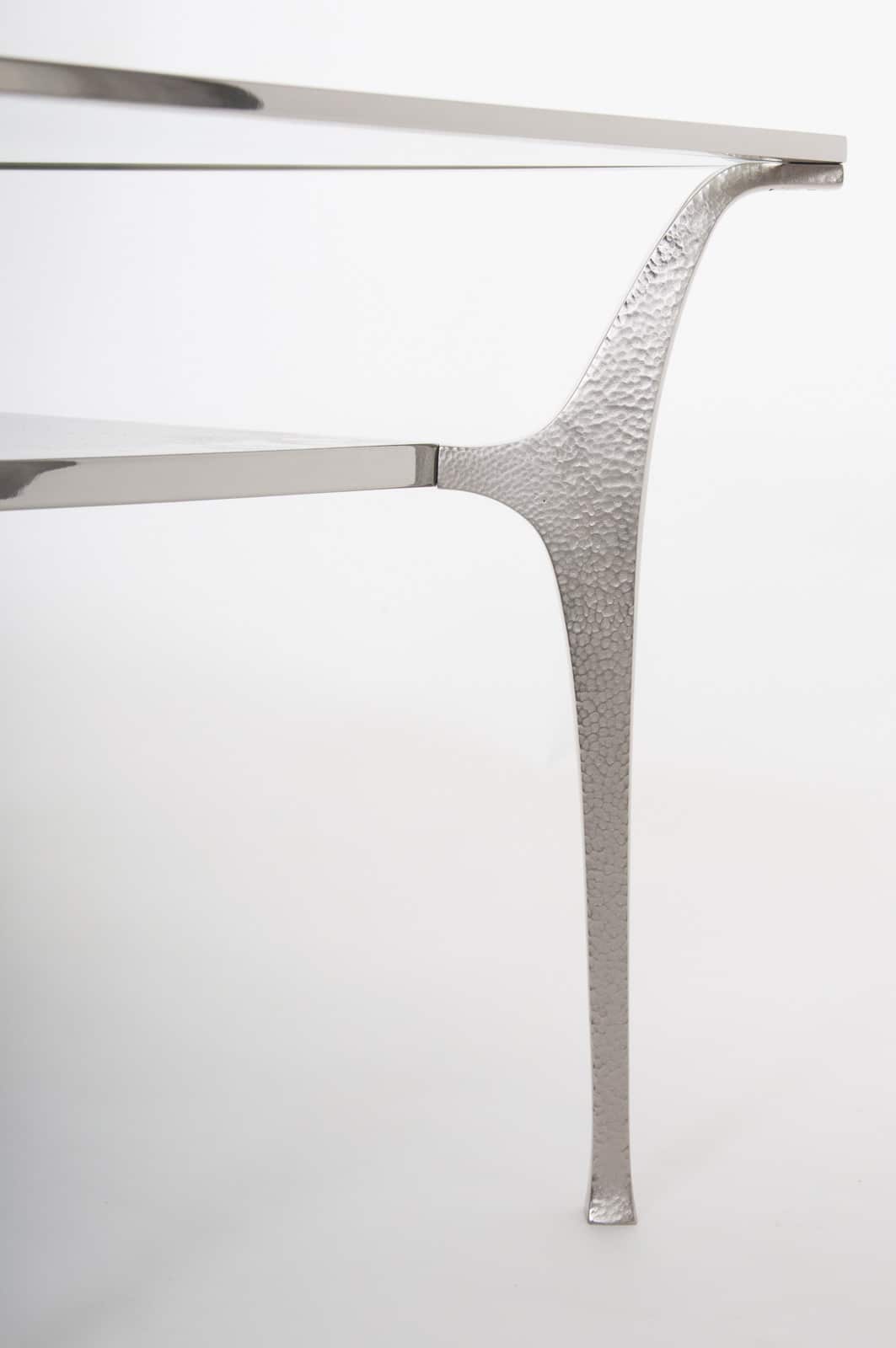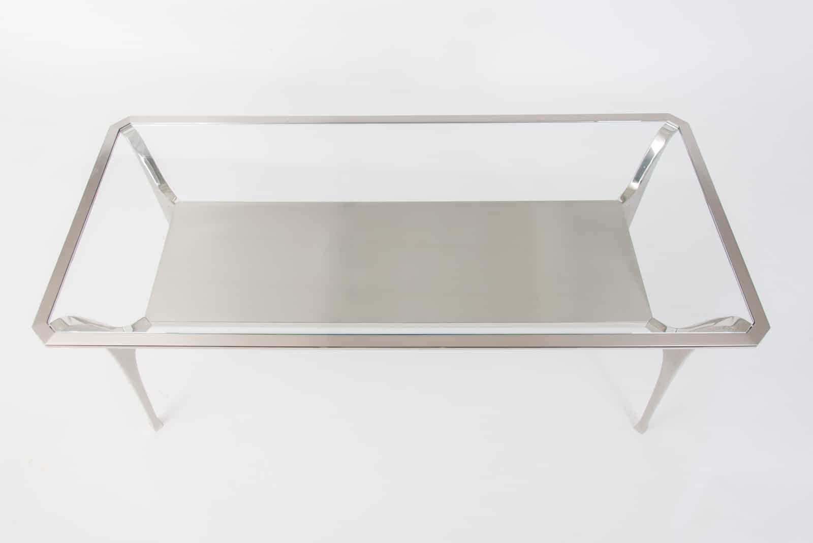 Fine quality nickel plated brass “Potence” low table designed by Jacques Charles in the 1970’s for Maison Charles in Paris. Ex Charles showroom model, circa 2000 Provenance: Maison Charles