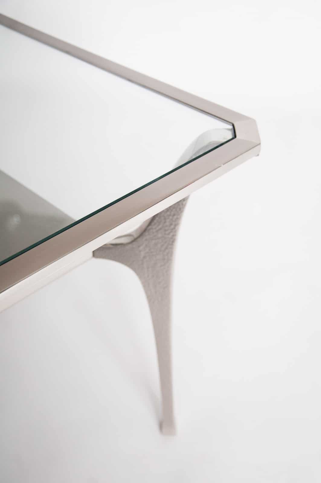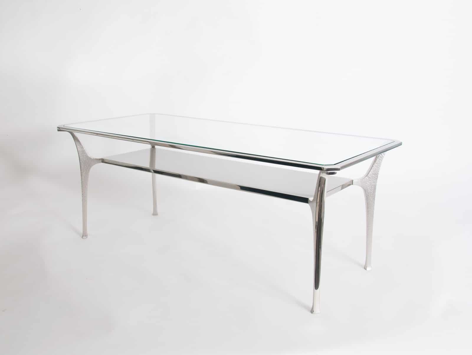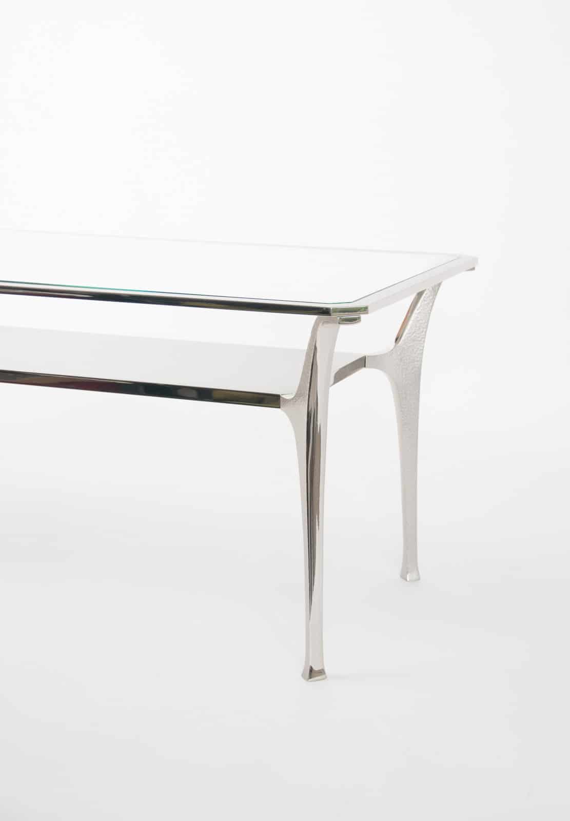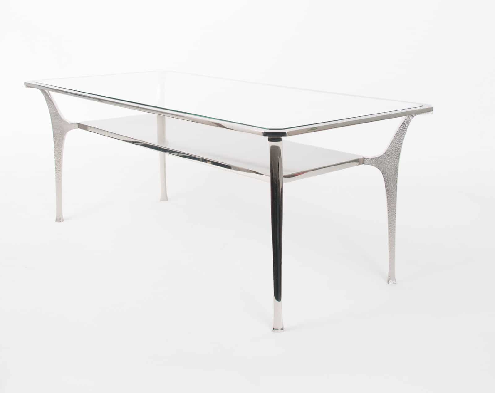 Fine quality nickel plated brass “Potence” low table designed by Jacques Charles in the 1970’s for Maison Charles in Paris. Ex Charles showroom model, circa 2000 Provenance: Maison Charles