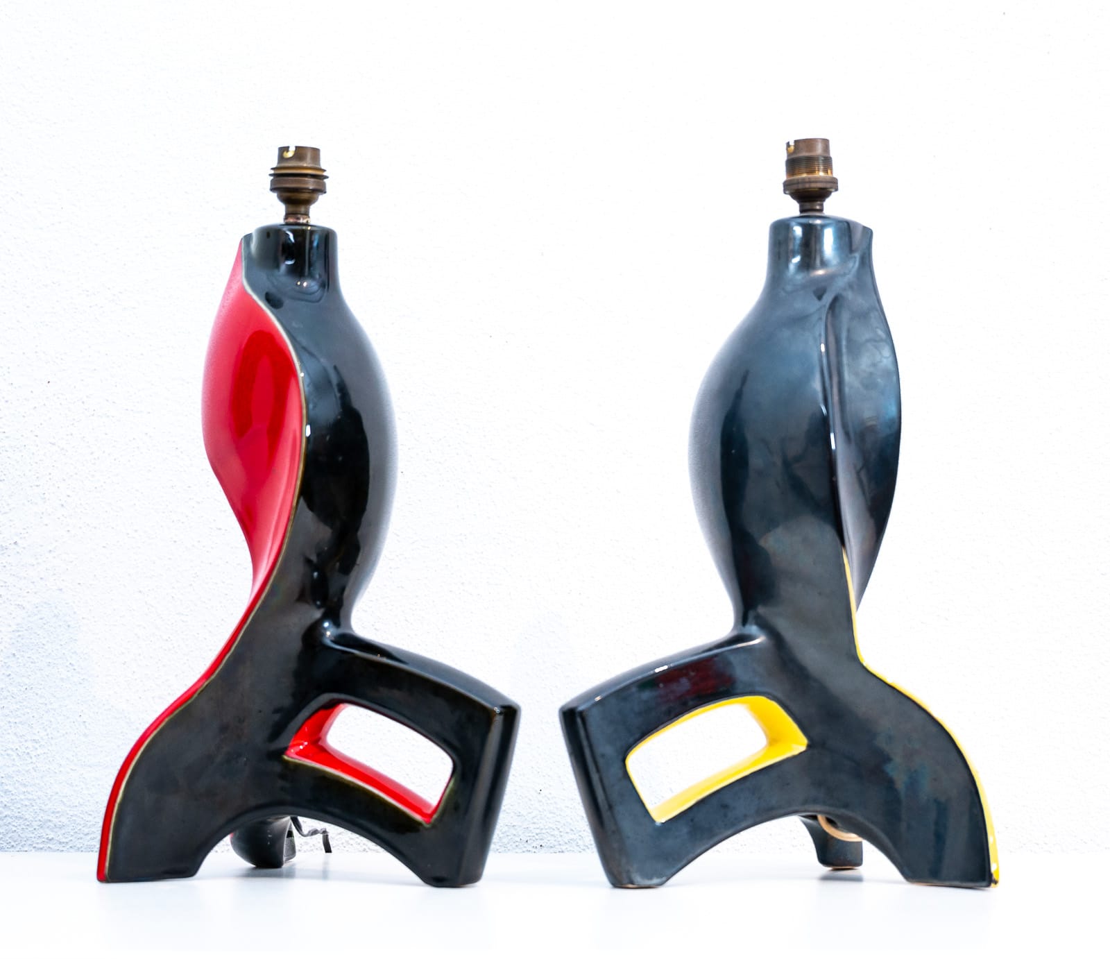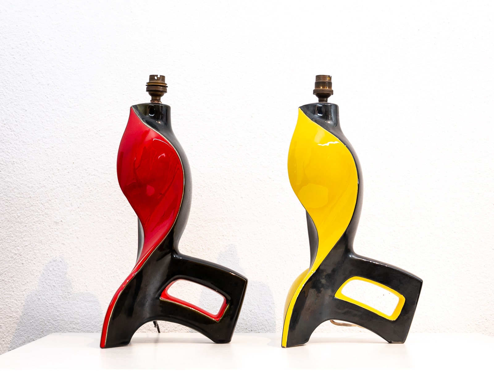 Matched pair of ceramic sixties table lamps attributed to Léon Elchinger.