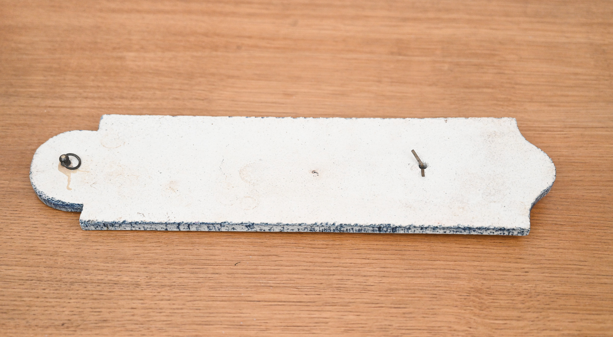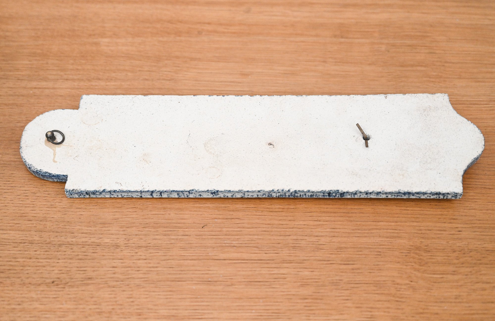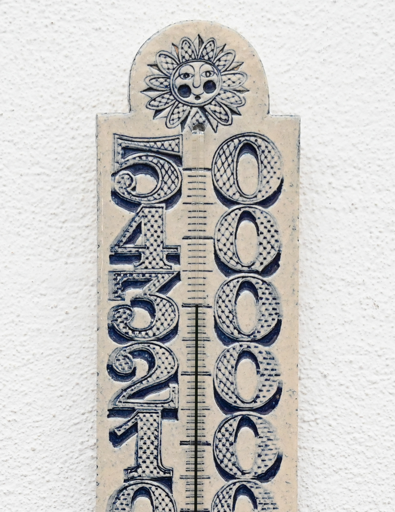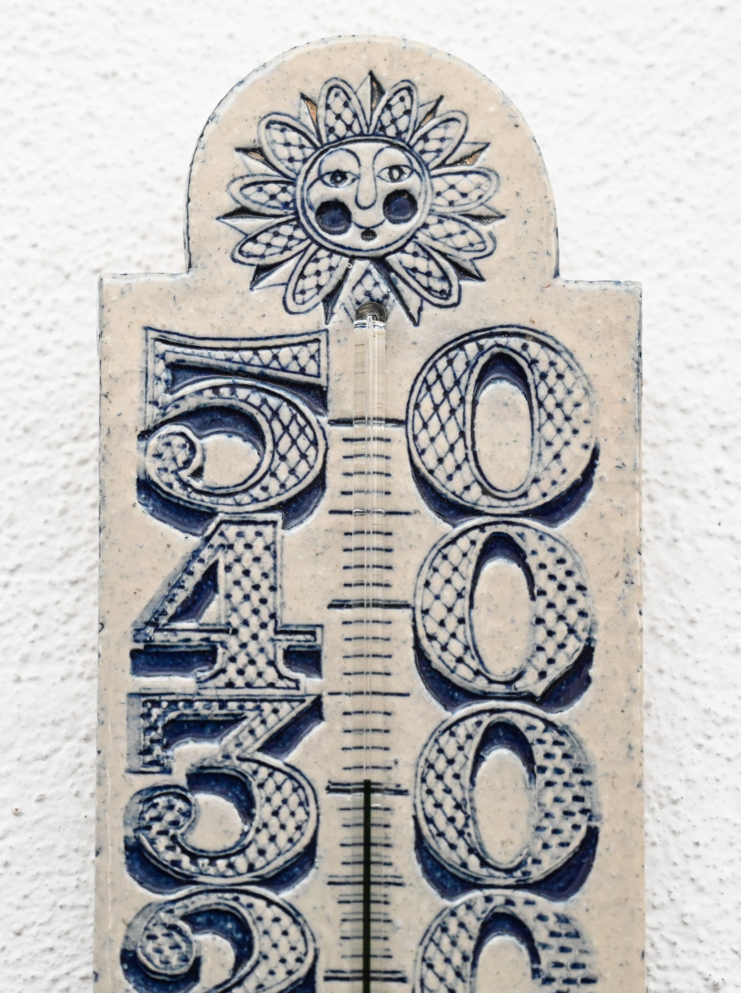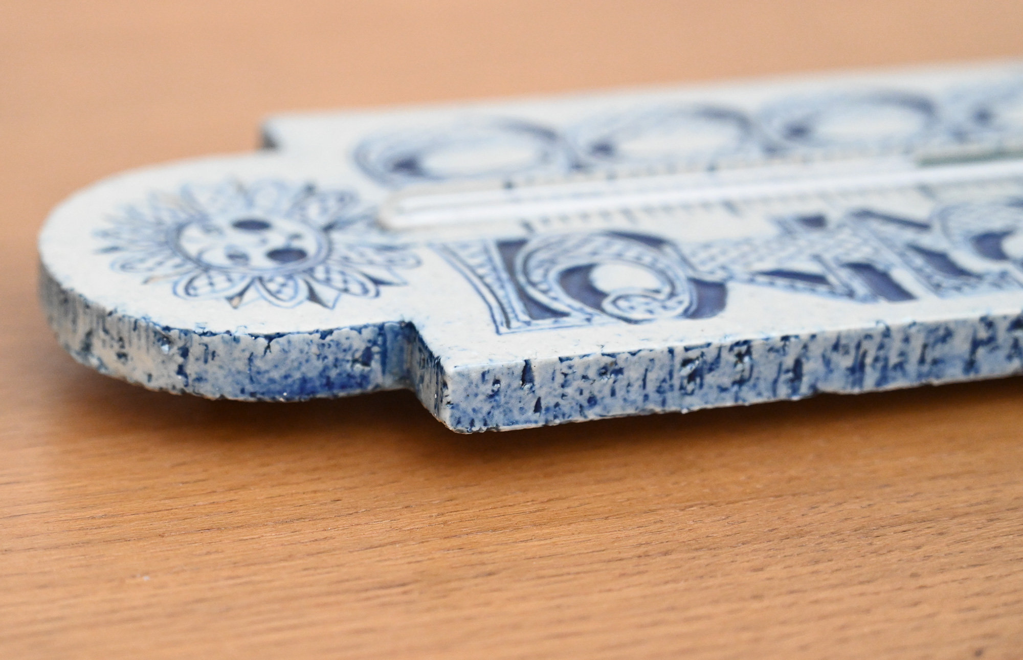 Roger Capron ceramic thermometer with blue sun and deer decoration, signed R Capron.