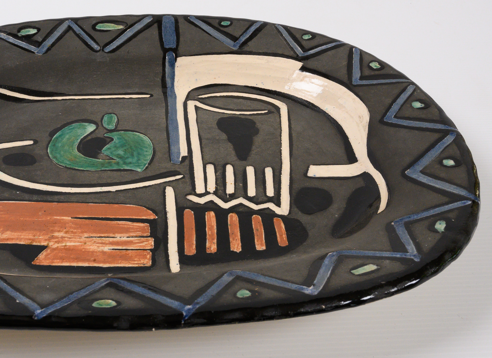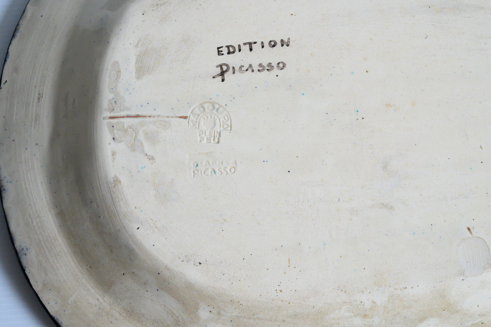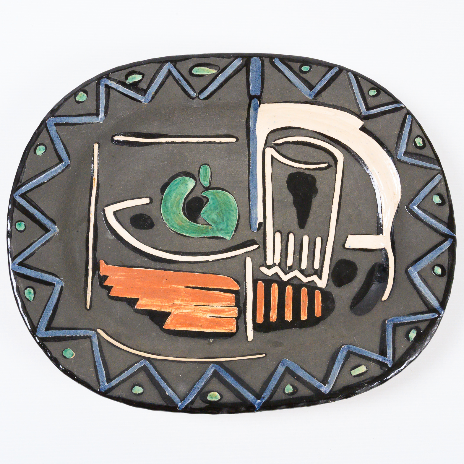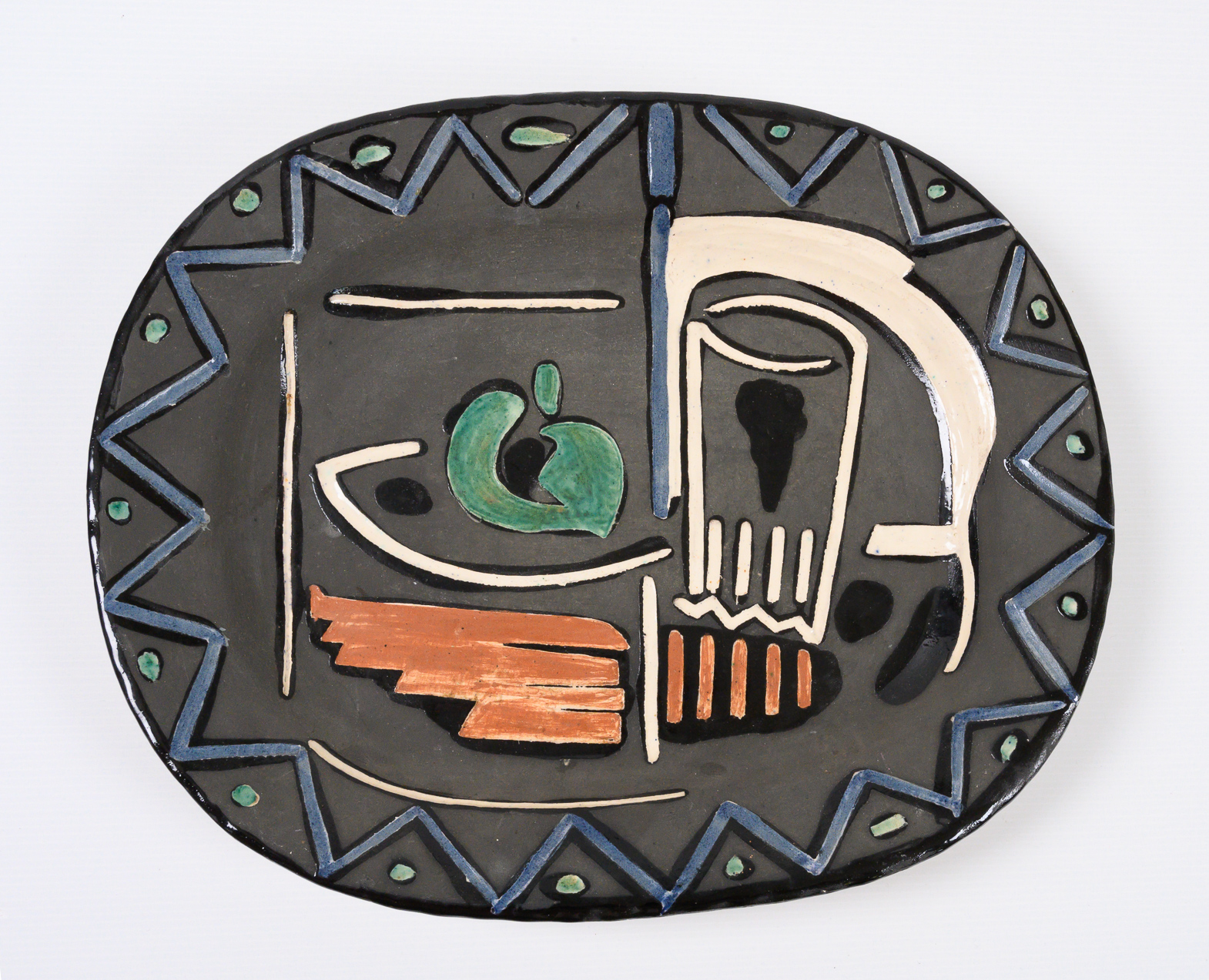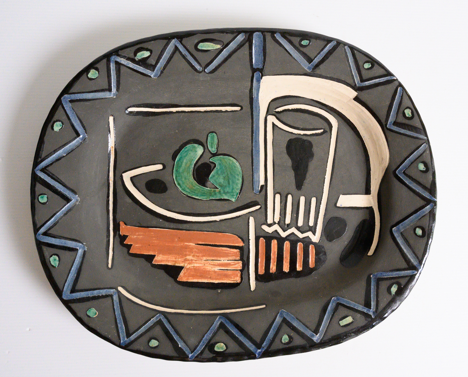 Nature Morte stamped and marked ‘Edition Picasso/Madoura/Madoura Plein Feu/Edition Picasso’ (underneath) partially glazed and engraved ceramic plate France 1953, Alain Ramié N°219 minor chips to the underside.