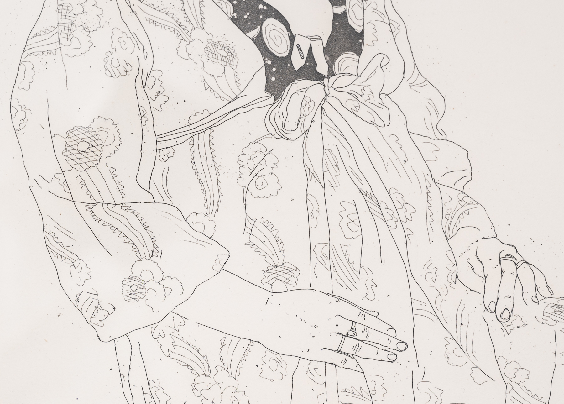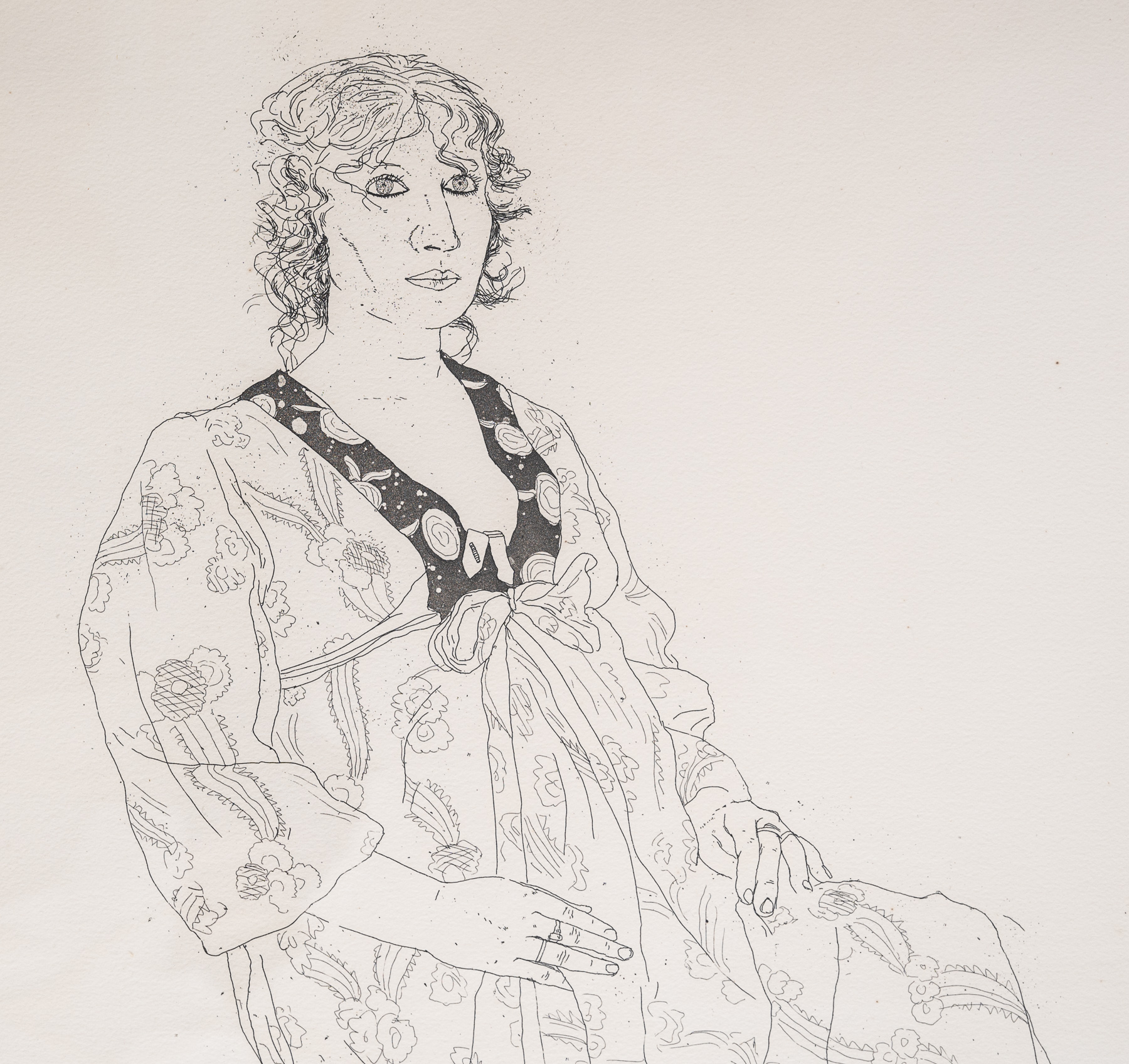 Original David Hockney etching of Celia Birtwell, iconic British textile designer and fashion designer, signed, numbered 13 of an edition of 75, dated 1969
