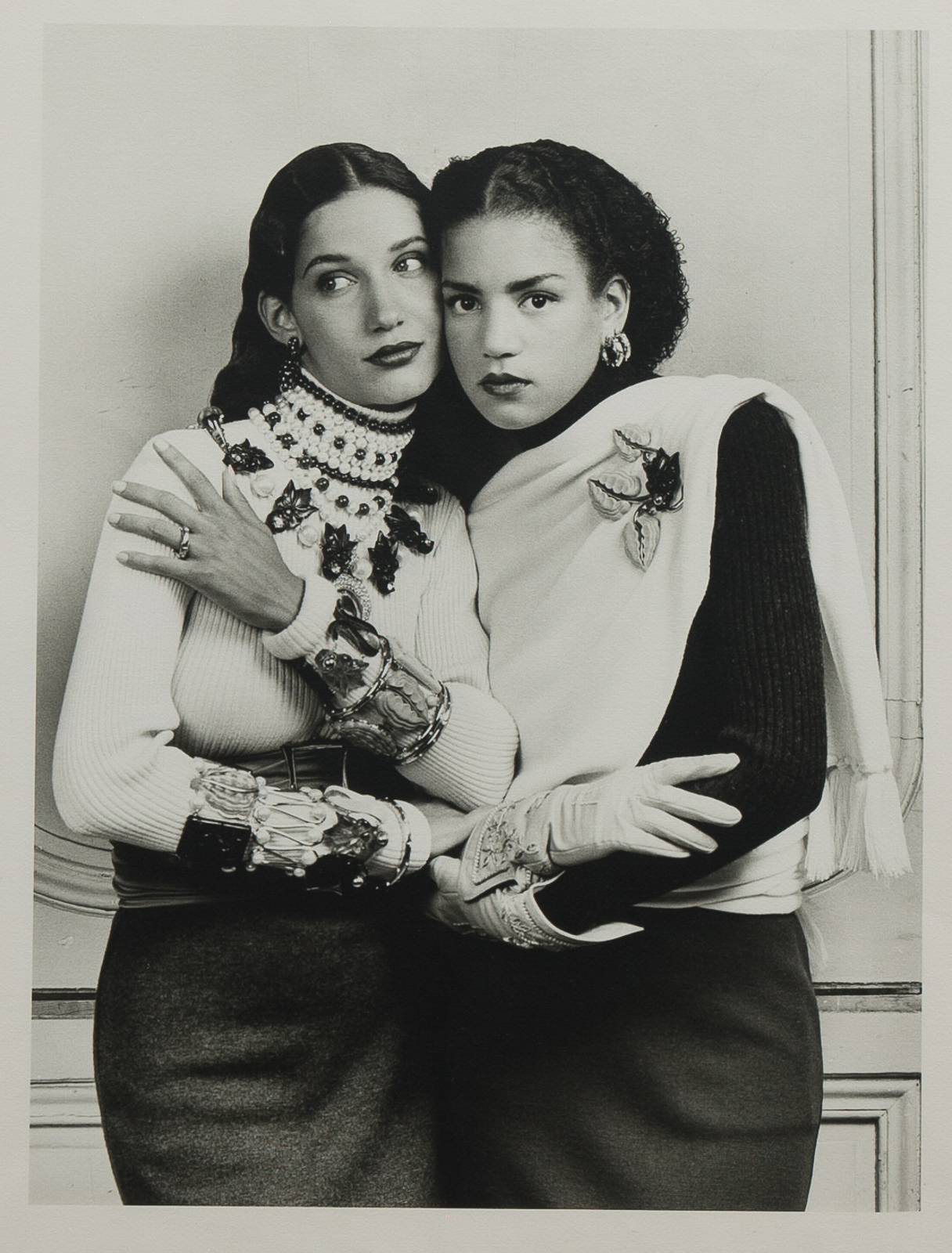 Original silver gelatin print of the models Marpessa and Veronica Webb from Lagerfeld’s studio,