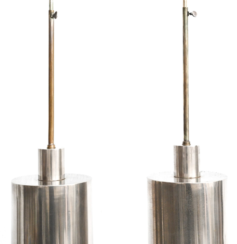 rare pair of monumental nickel plated table lamps of cylindrical form attributed to Francois Catroux.