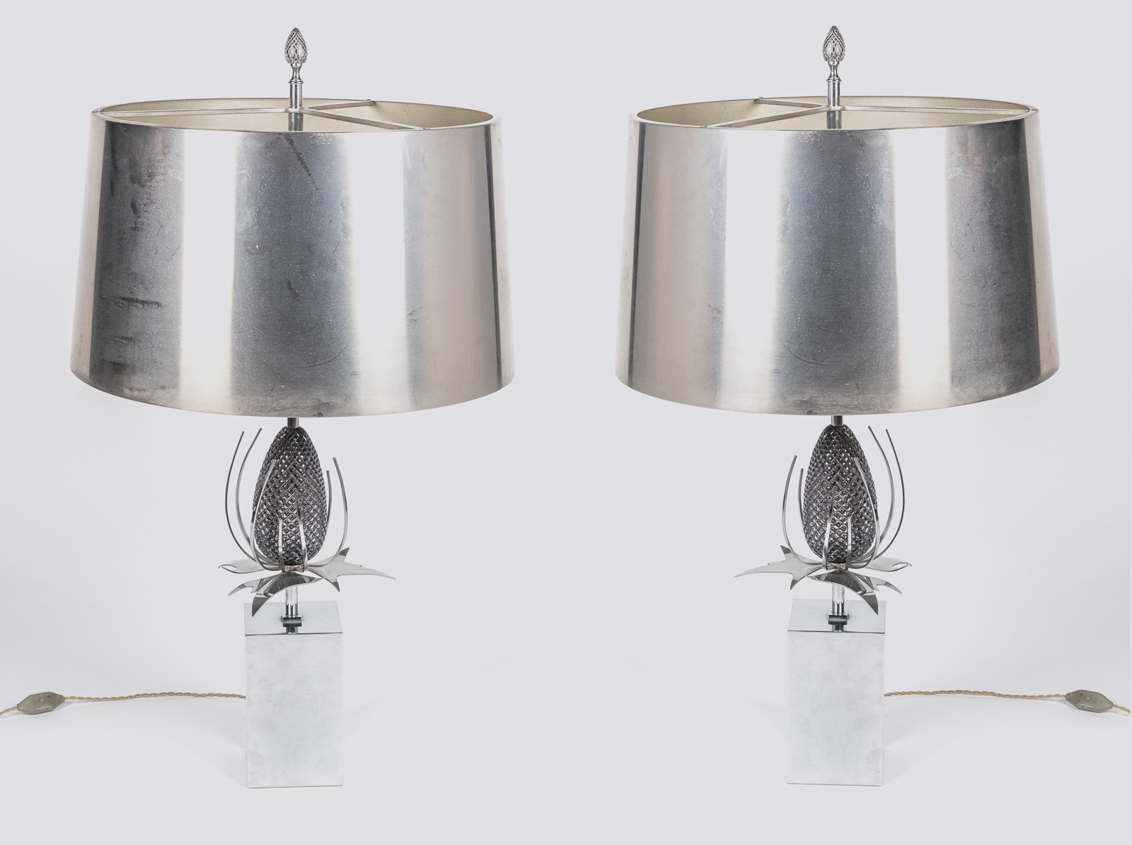 Pair of Chardon (thistle) table lamps designed by Chrystiane Charles for Maison Charles, stamped “Charles” “Made in France” circa 1970