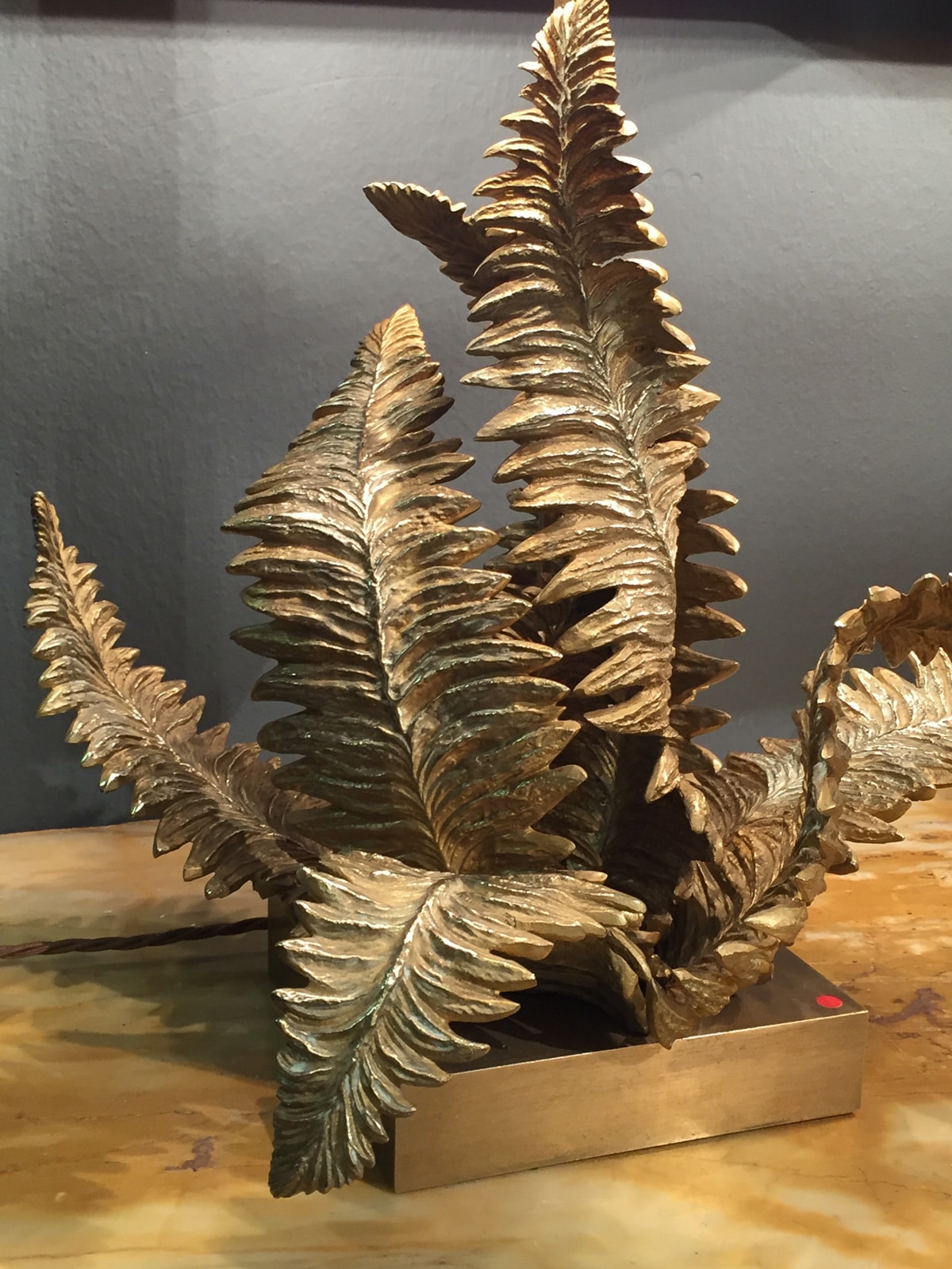 Beautiful pair of Maison Charles gilt bronze Fern Table Lamps with original shades