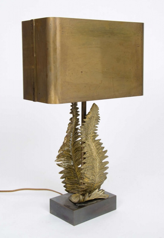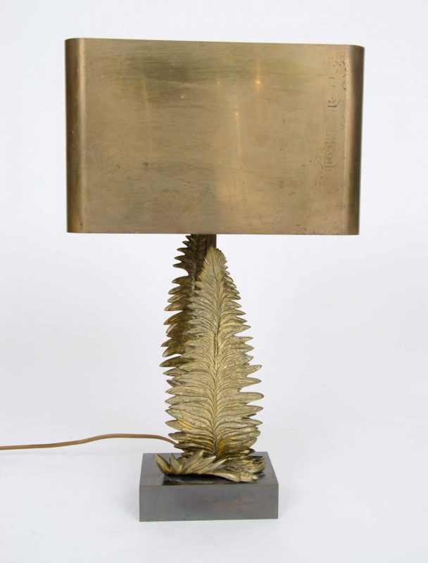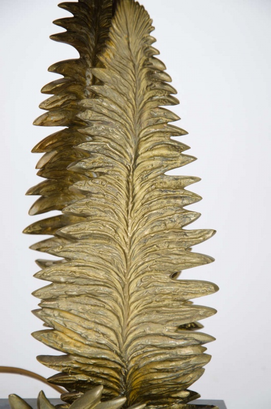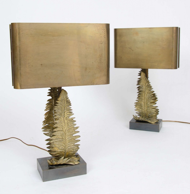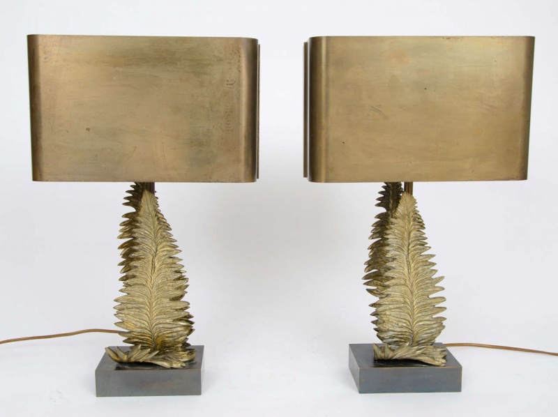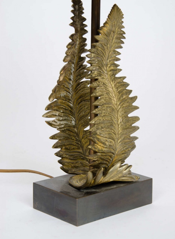 Pair of Maison Charles bronze fern table lamps designed by Chrystiane Charles for Maison Charles with original shades stamped “Charles, made in France.”