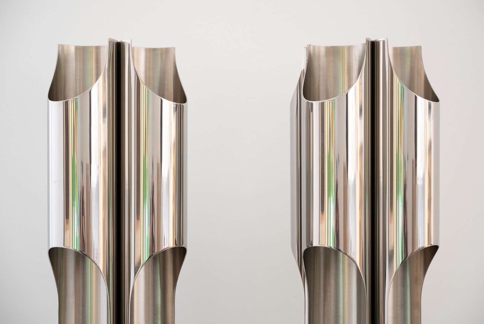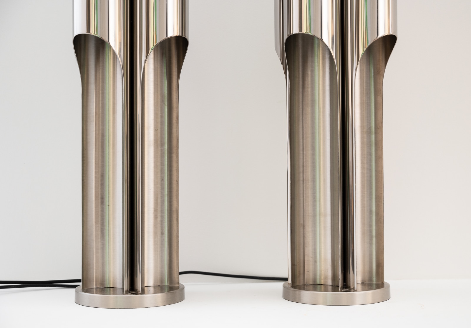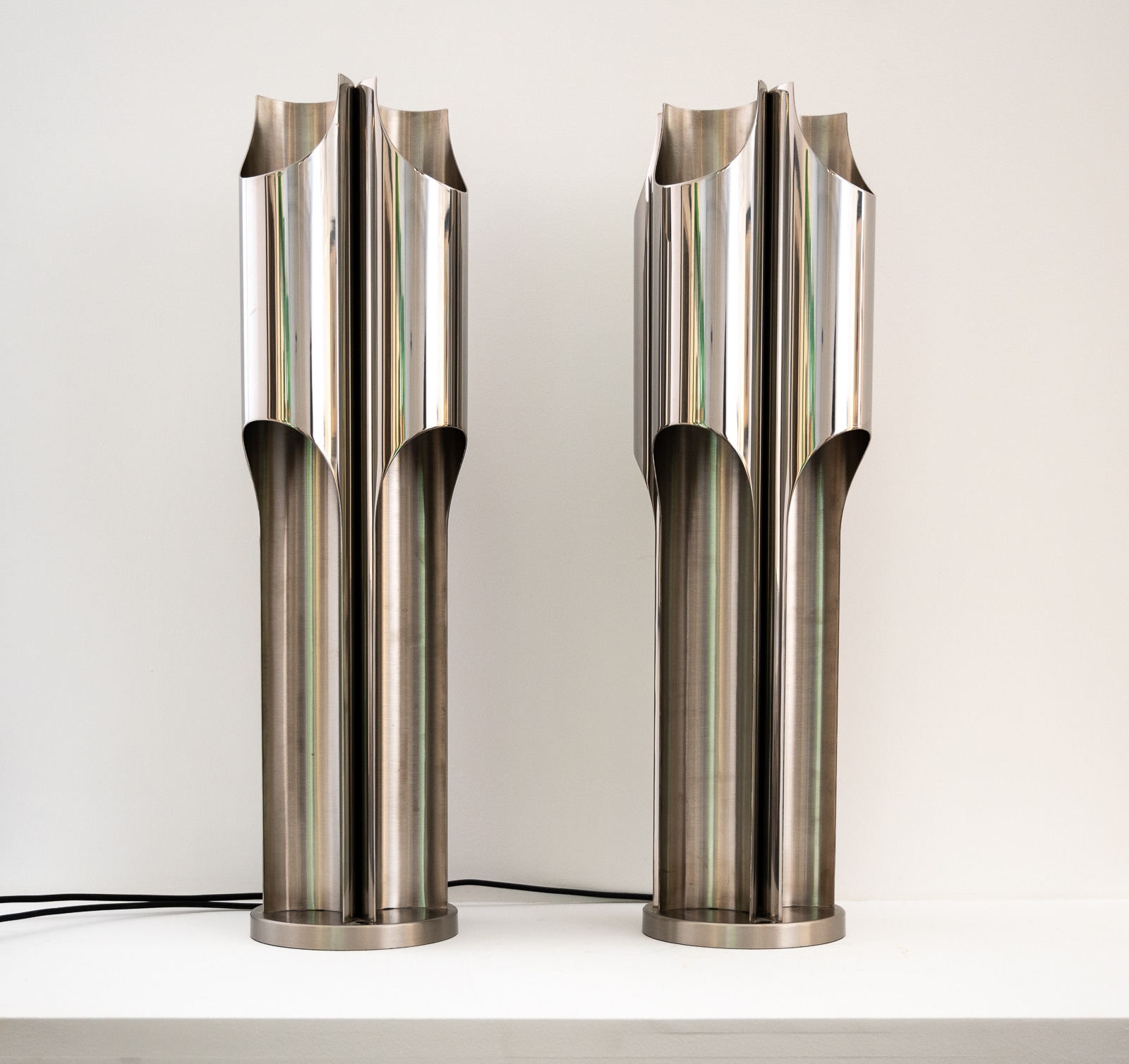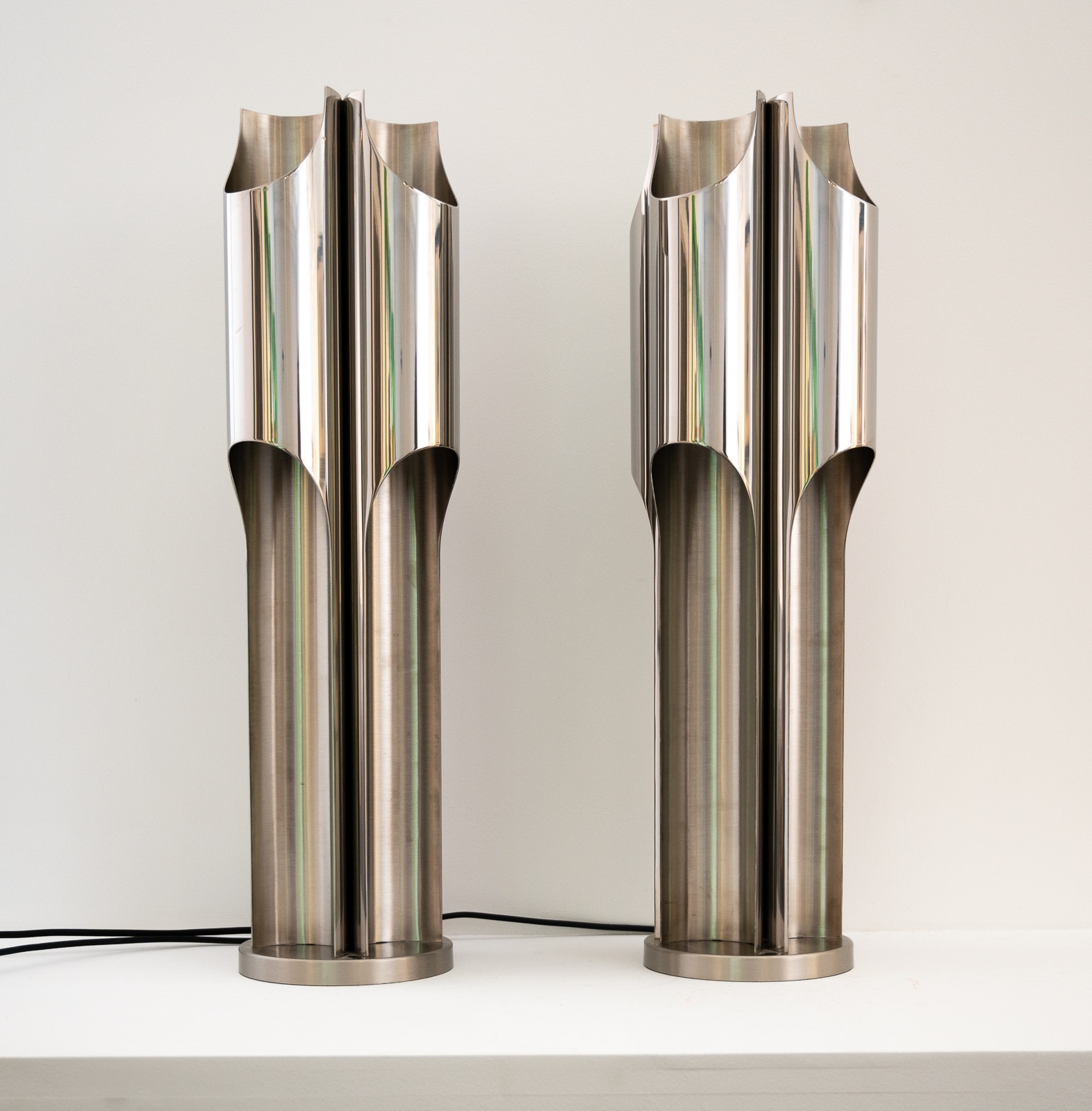 A fine pair of Maison Charles stainless steel Orgue lamps