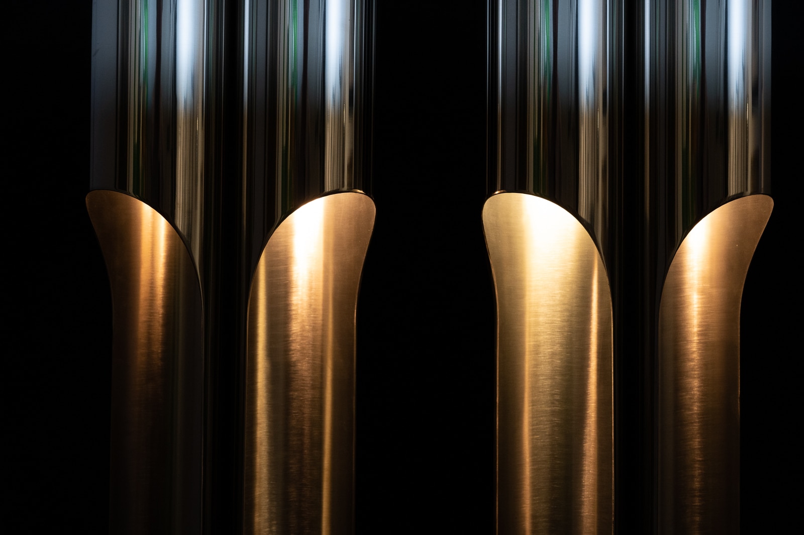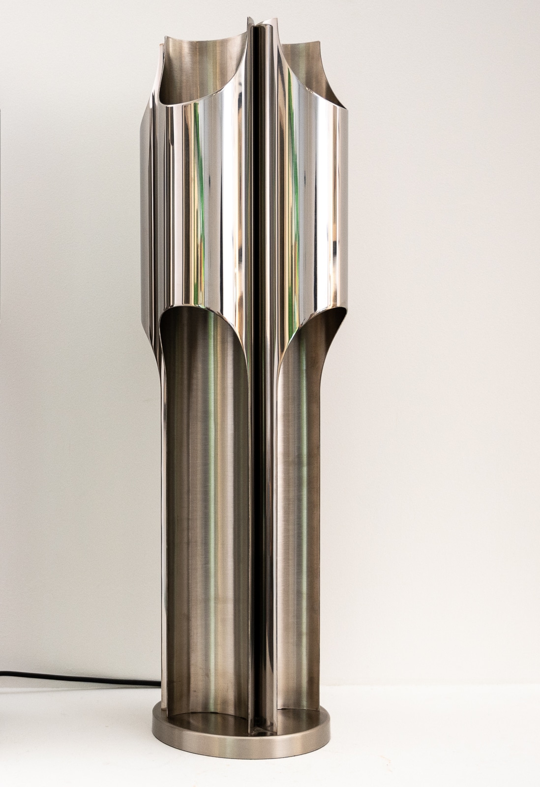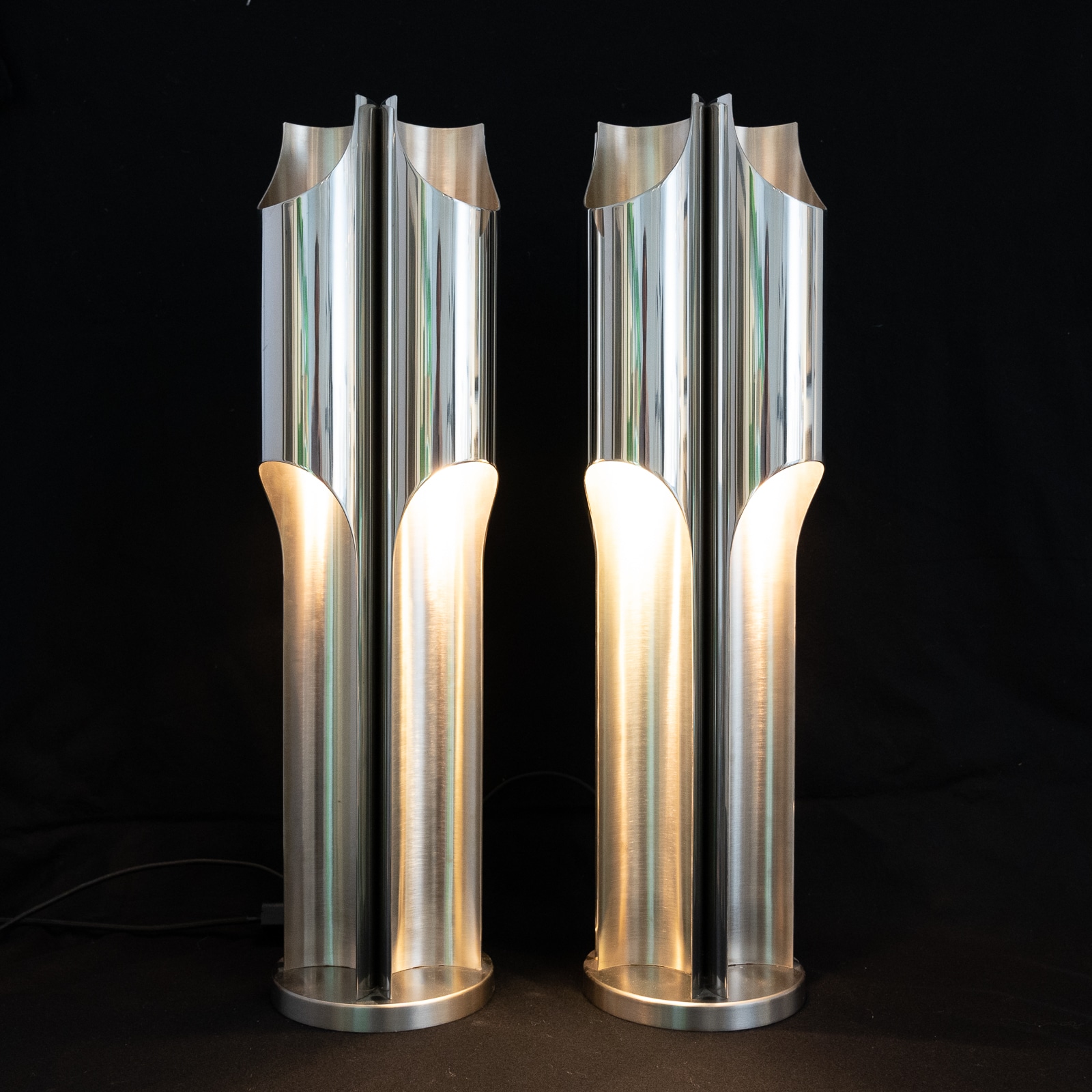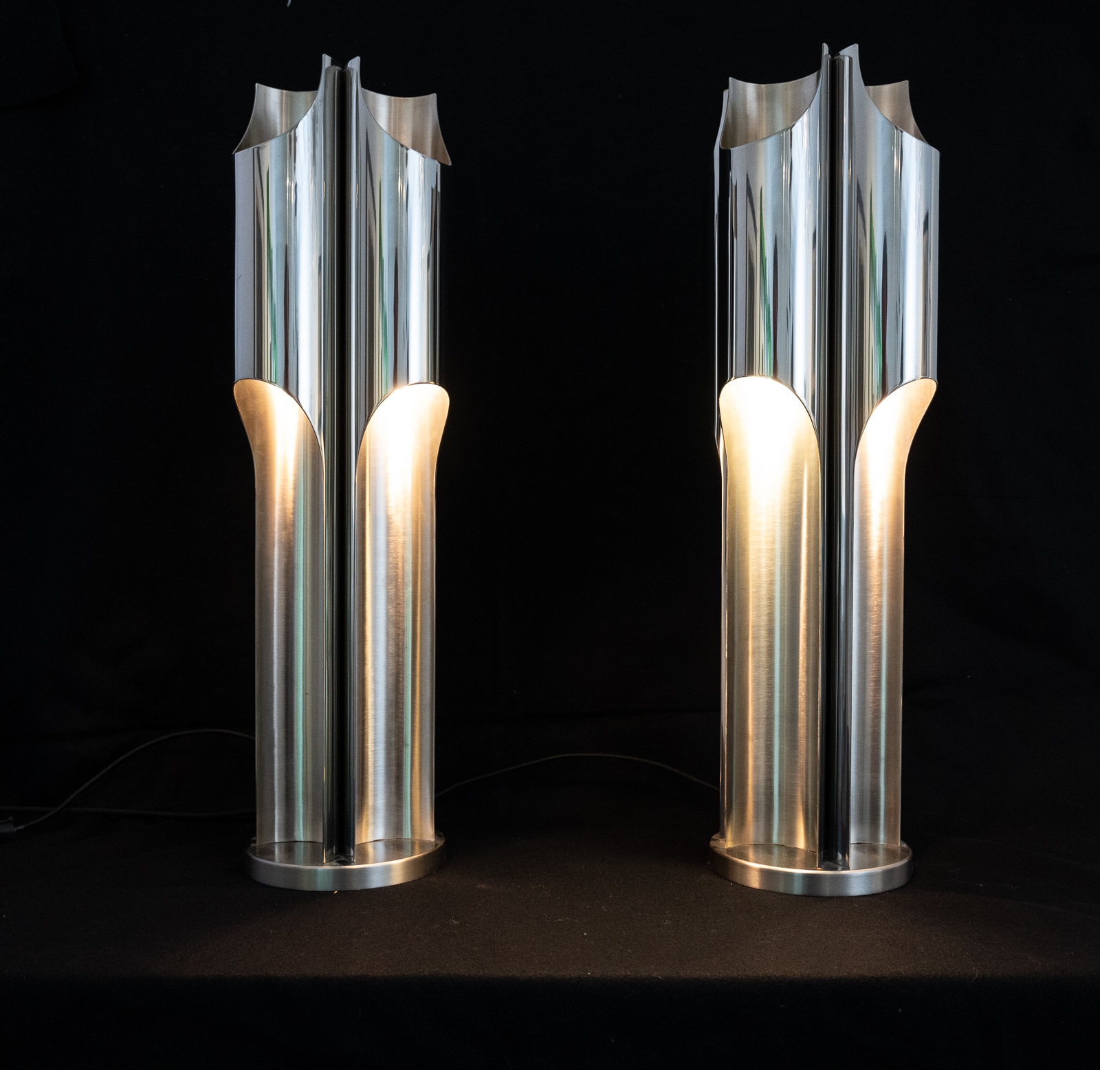 A fine pair of Maison Charles stainless steel Orgue lamps
