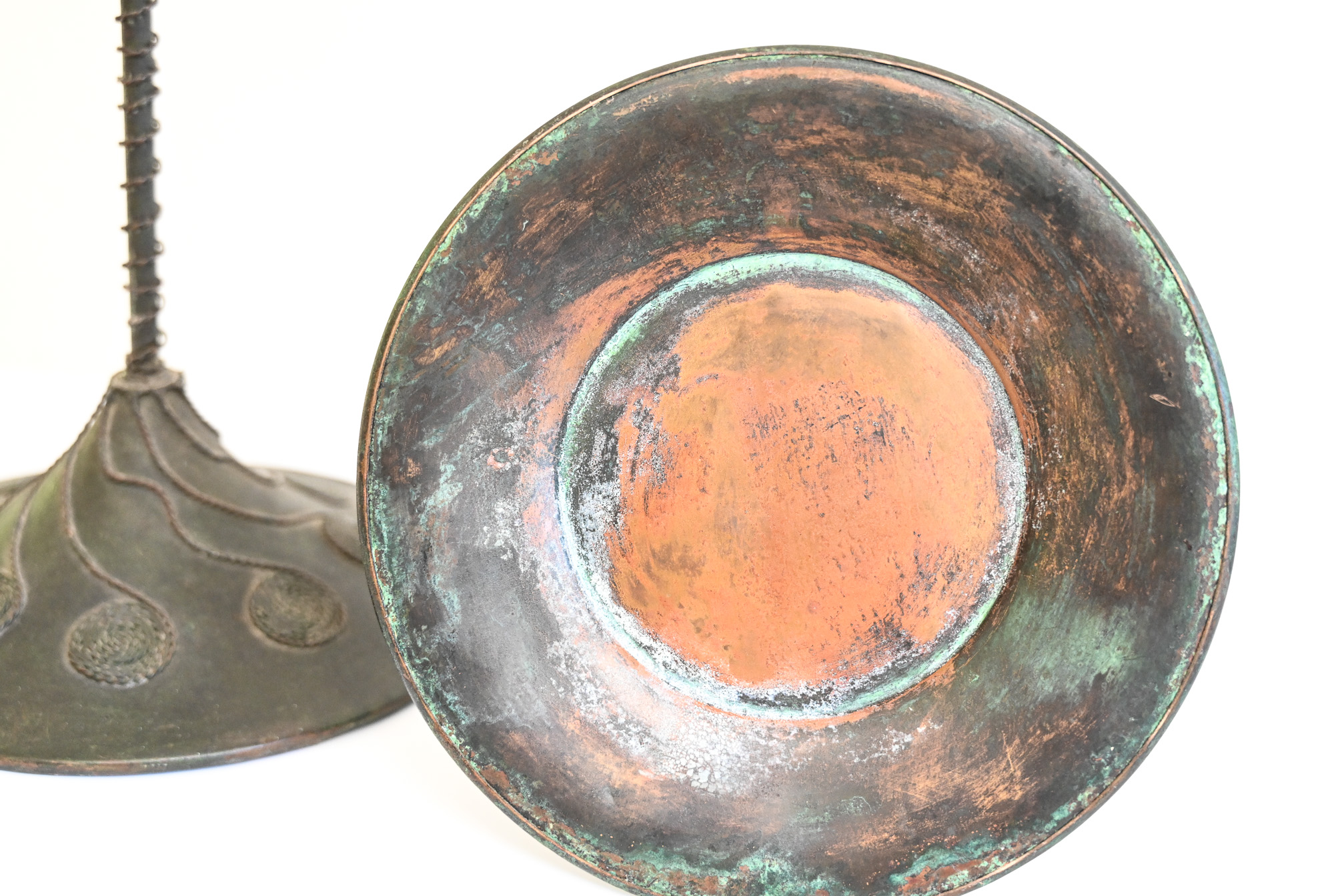 | Condition | excellent original condition, exhibiting a deep, rich patina that enhances the hand-wrought texture of the copper. |