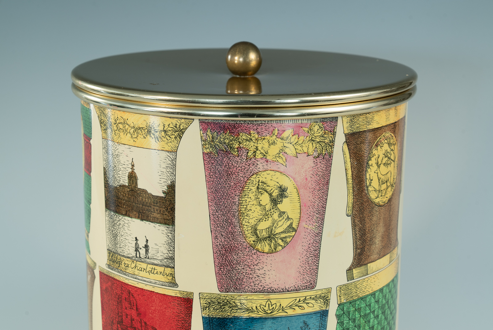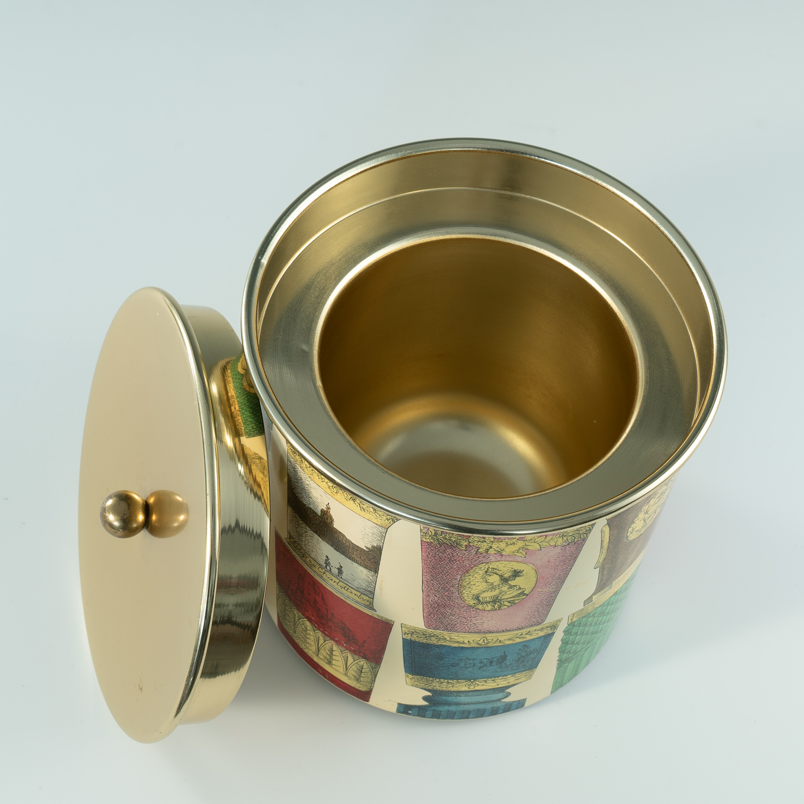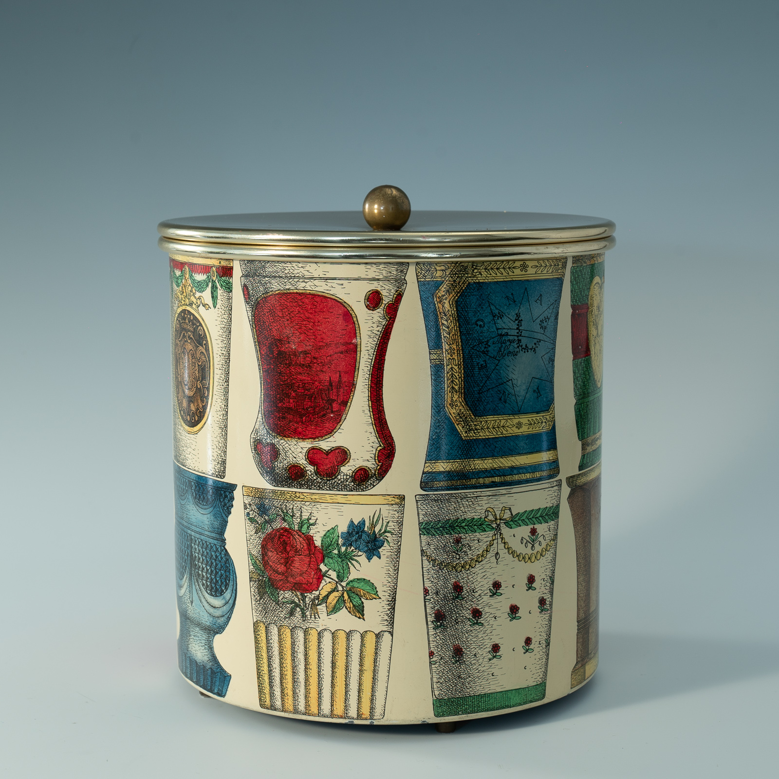 Ice Bucket with Bohemian Glasses design by Piero Fornasetti, Fornasetti label under the base.