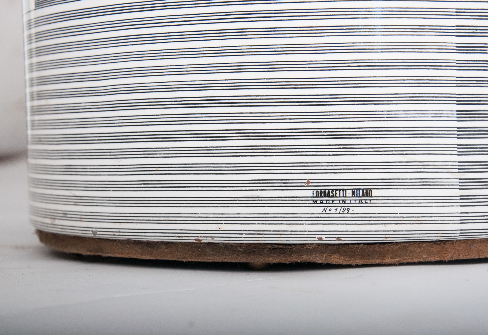 Fornasetti umbrella holder with a 1950’s design “Casa con Colonne” depicting a black and white architectural design, Fornasetti makers and date marks for 1999
