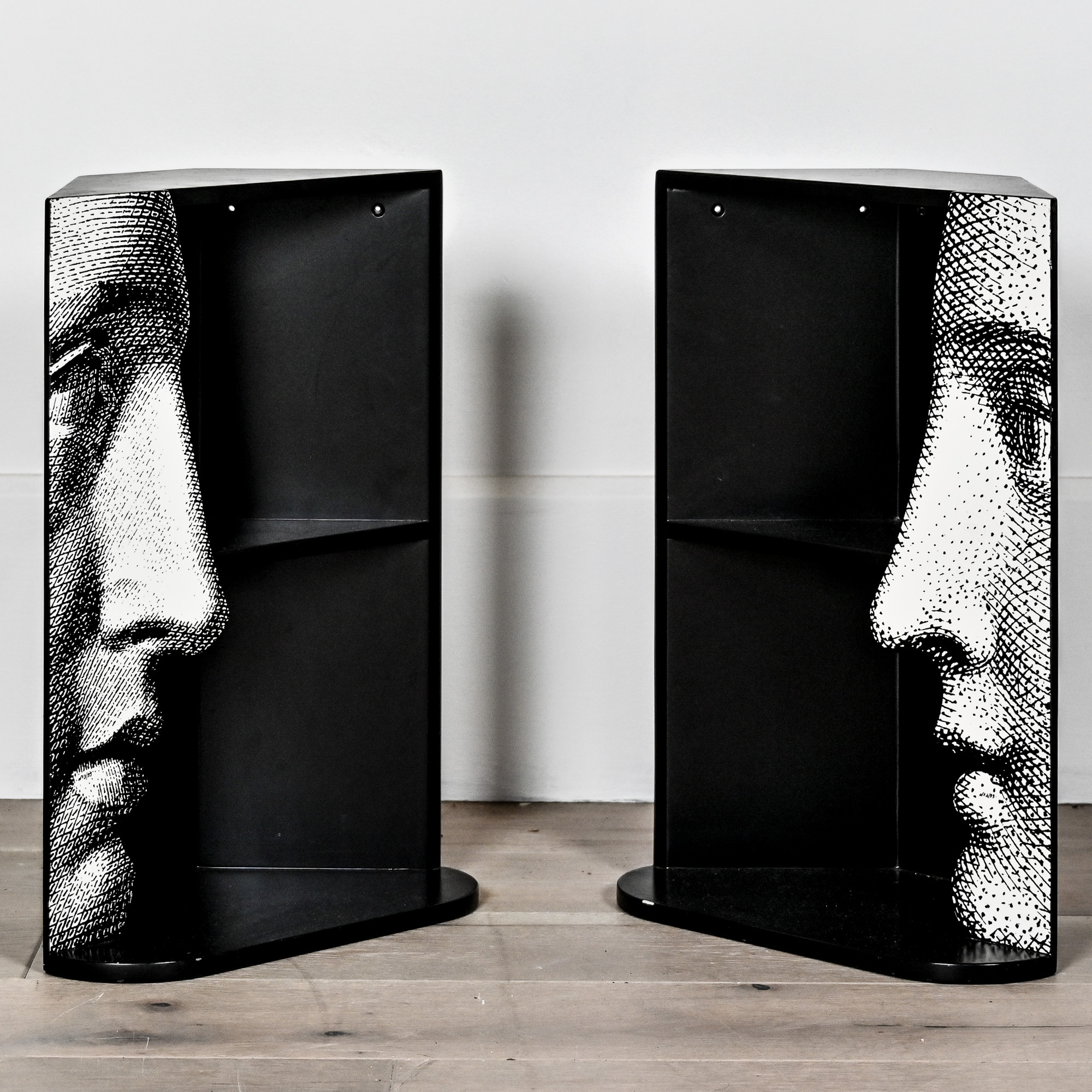 Rare pair of Barnaba Fornasetti wall shelves from the “Profilo” series.
