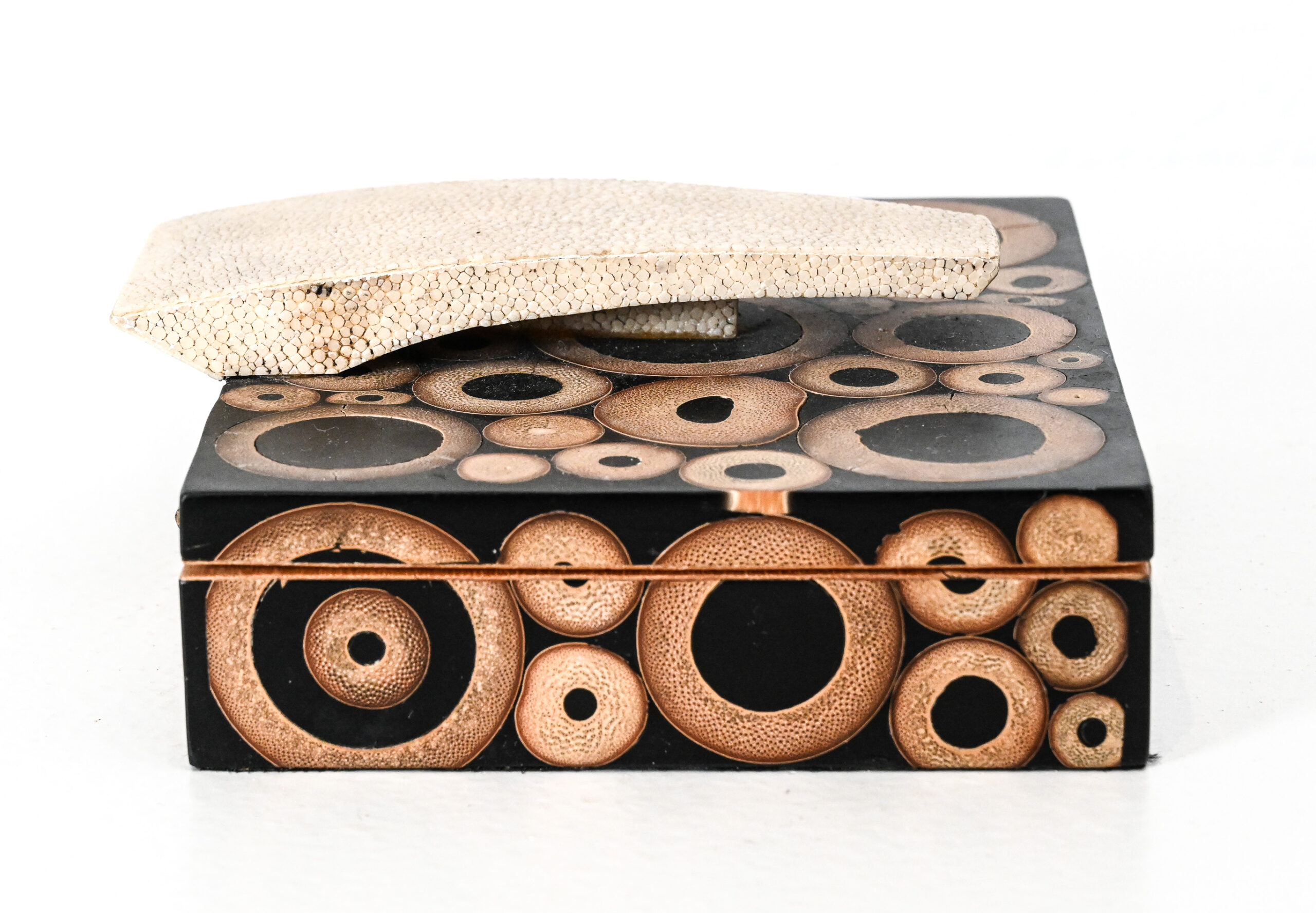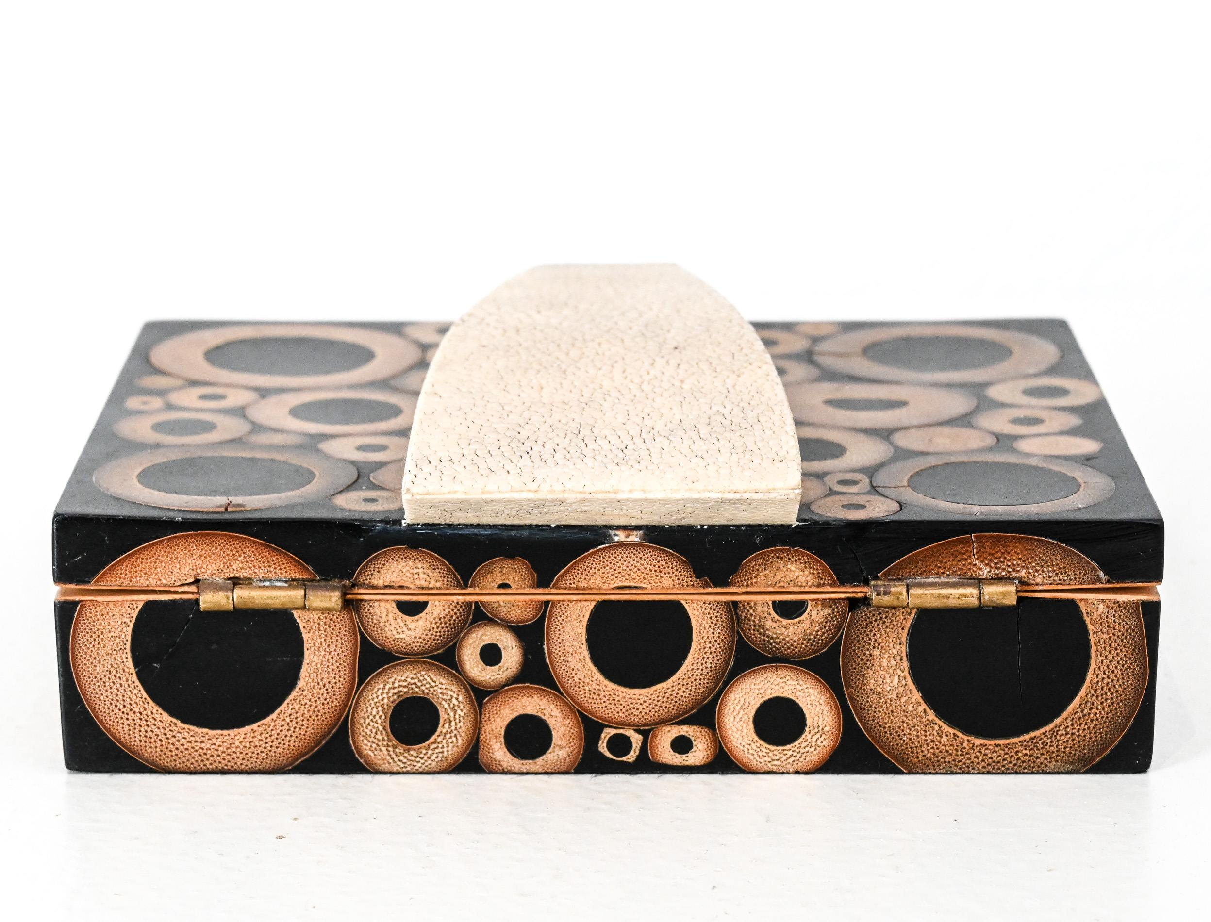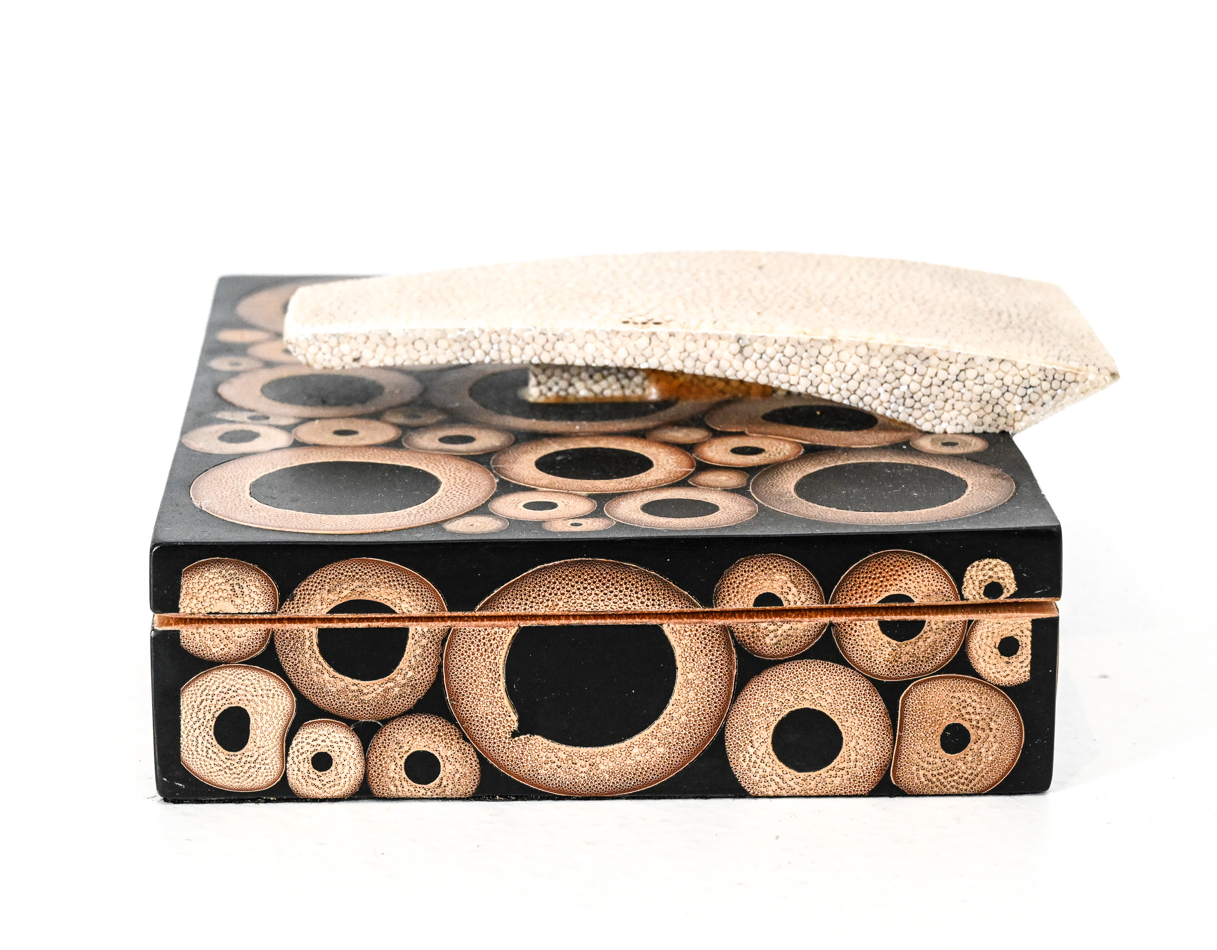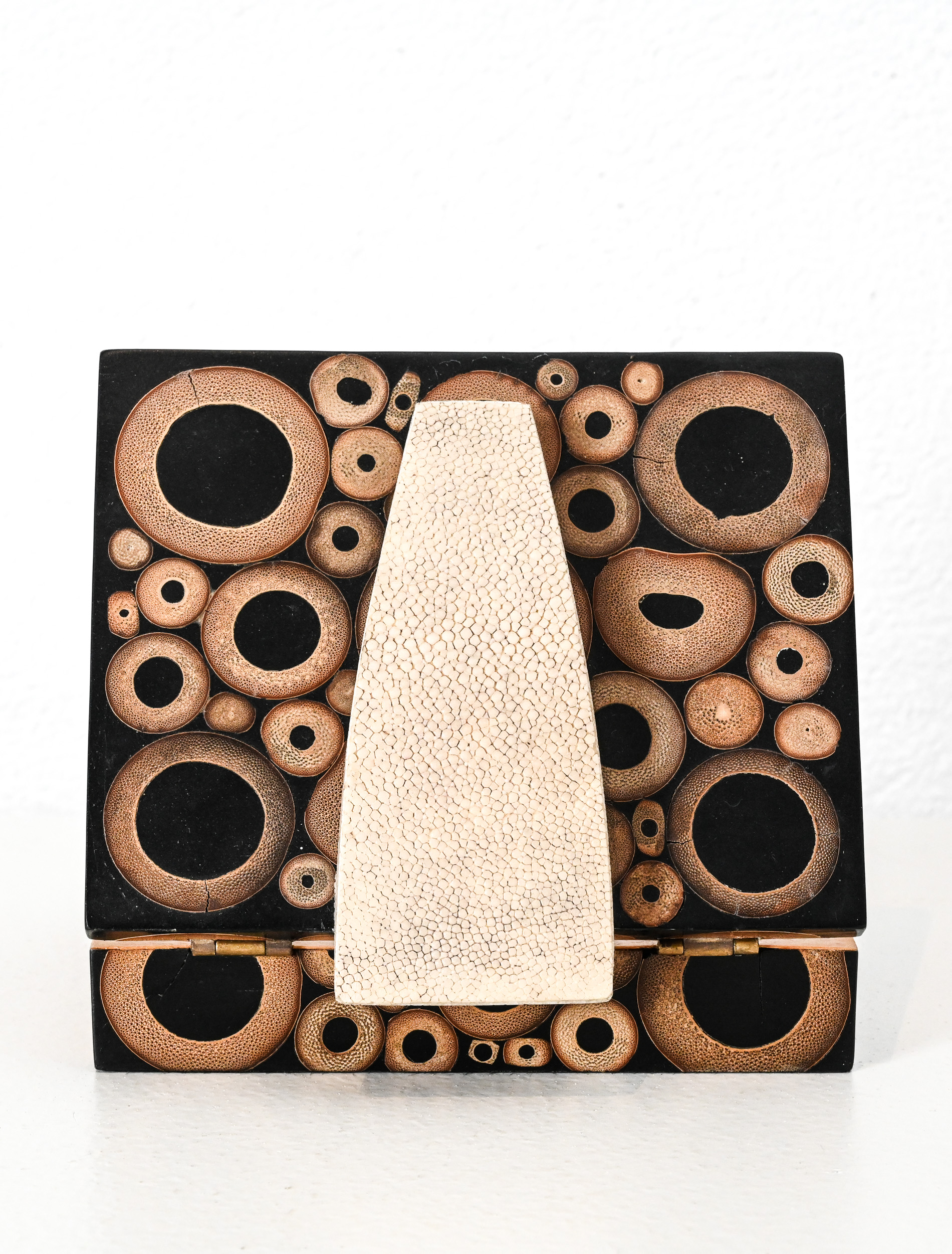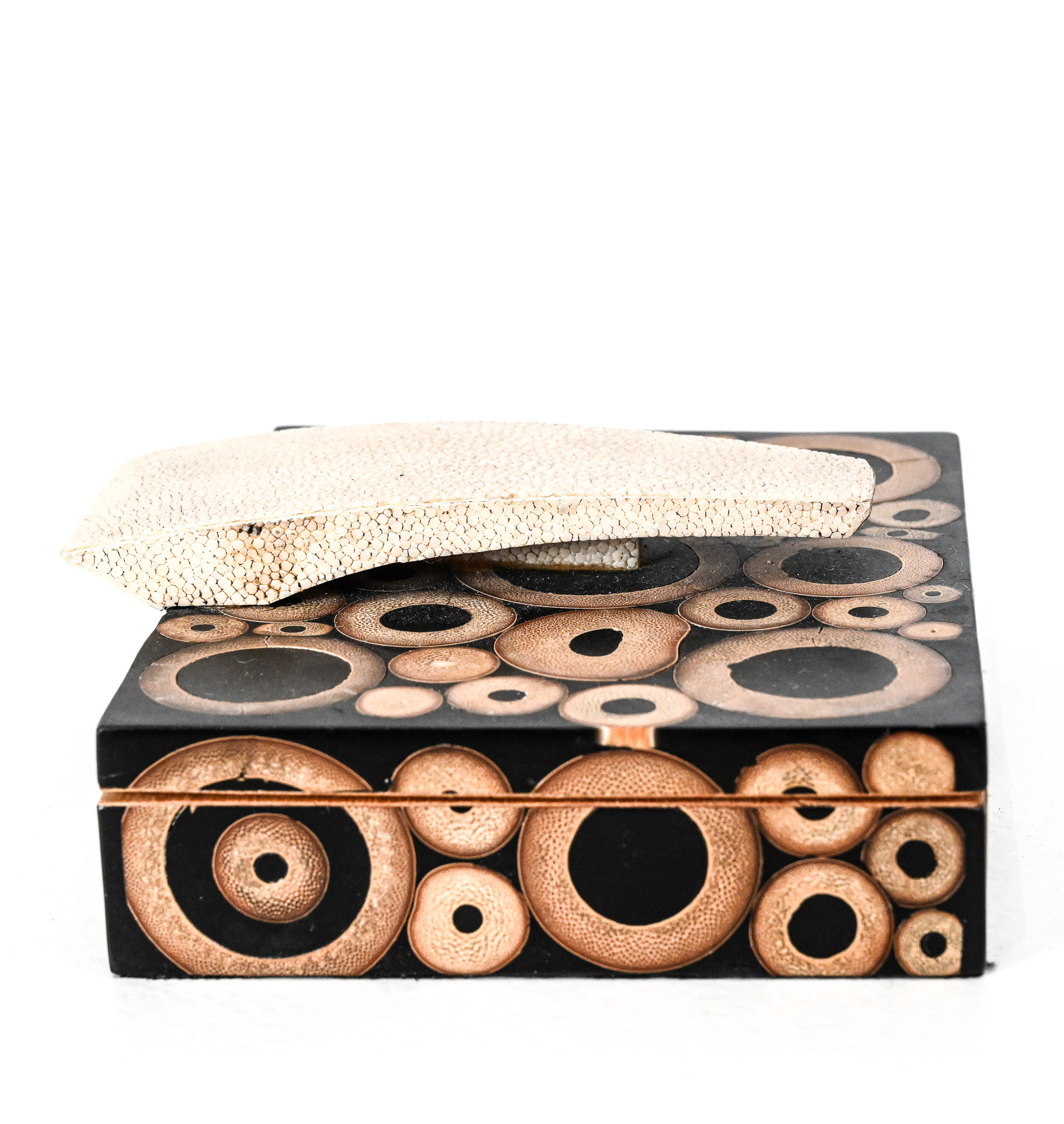 R&Y Augousti was founded in 1989 by husband-wife duo Ria & Yiouri Augousti. Their artistic backgrounds brought them together as innovators in their field by reviving the artisanal techniques of shagreen and other exotic materials that were predominant in the Art Deco period of the 1930s.