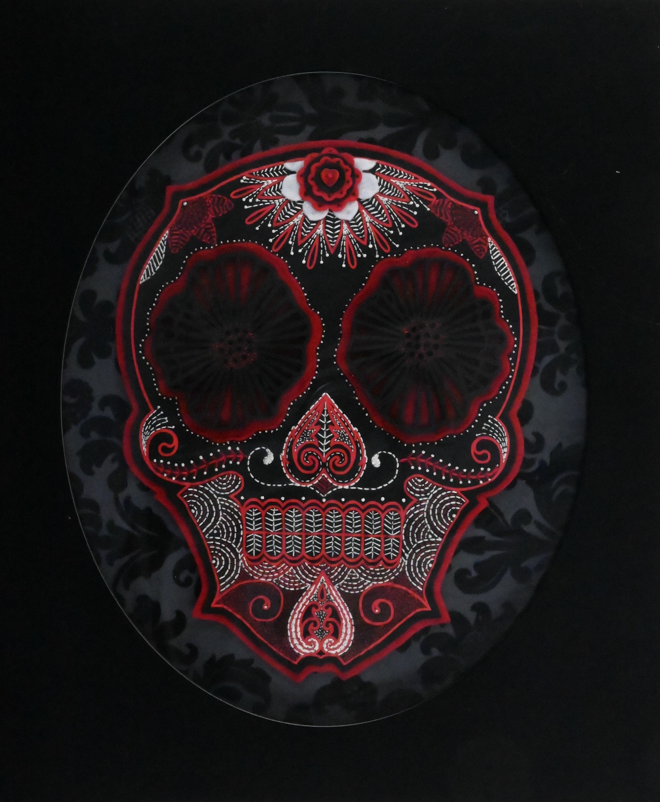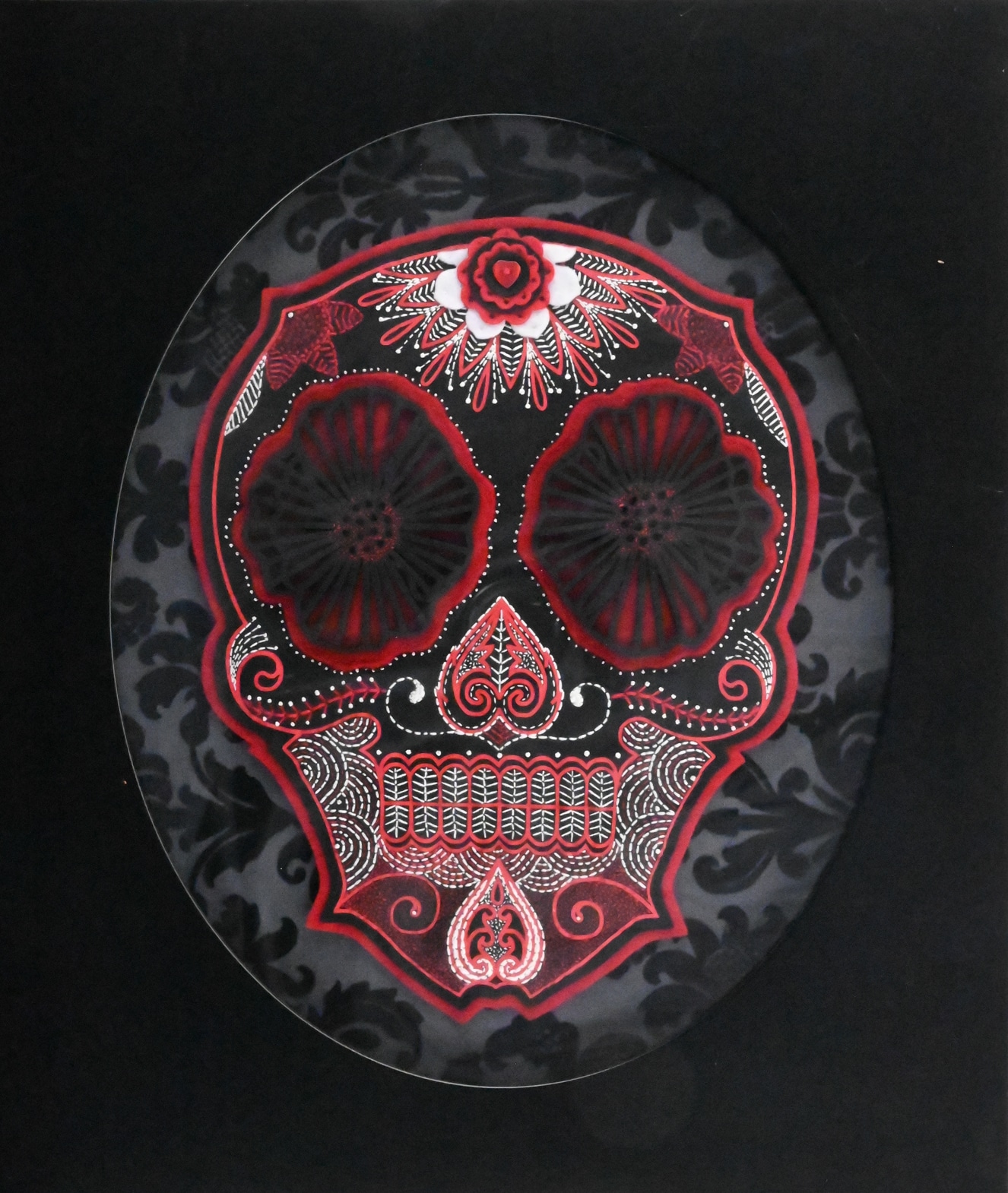 Calavera series of embroidered heads by South African artist Nicola de Jager