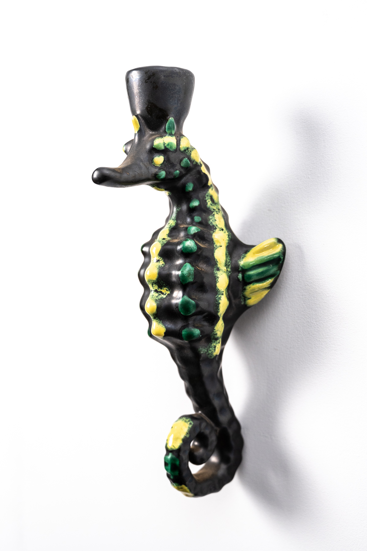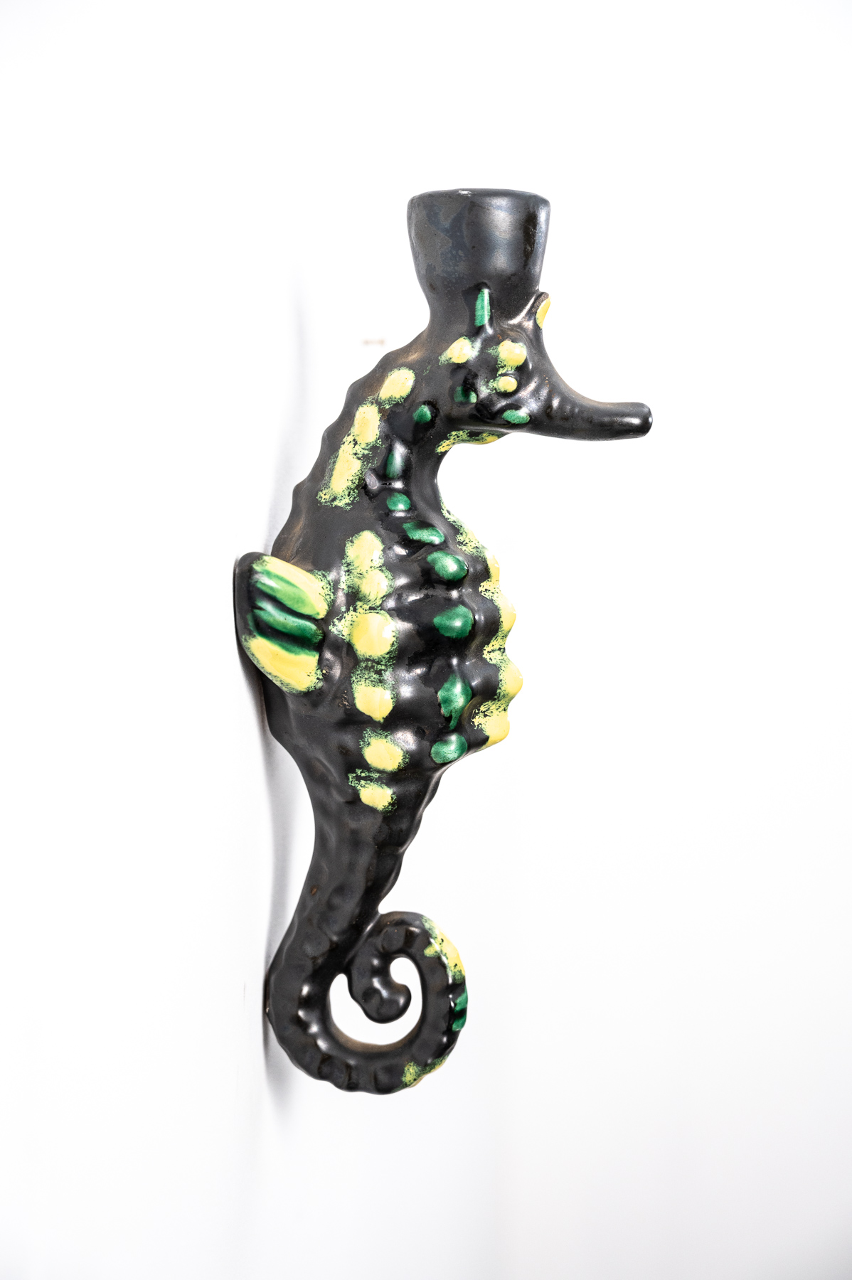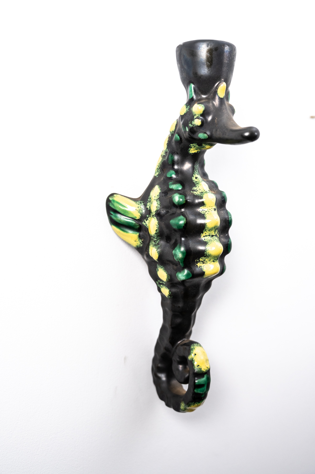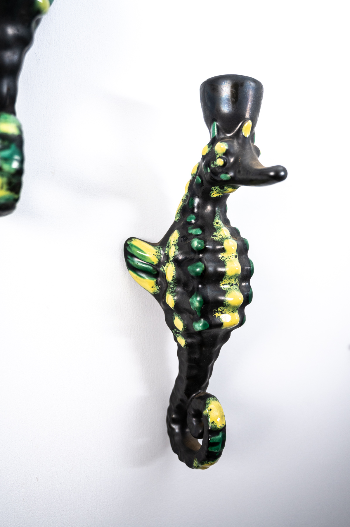 set of three mid century Vallauris ceramic seahorse wall lights by Albert Ferlay