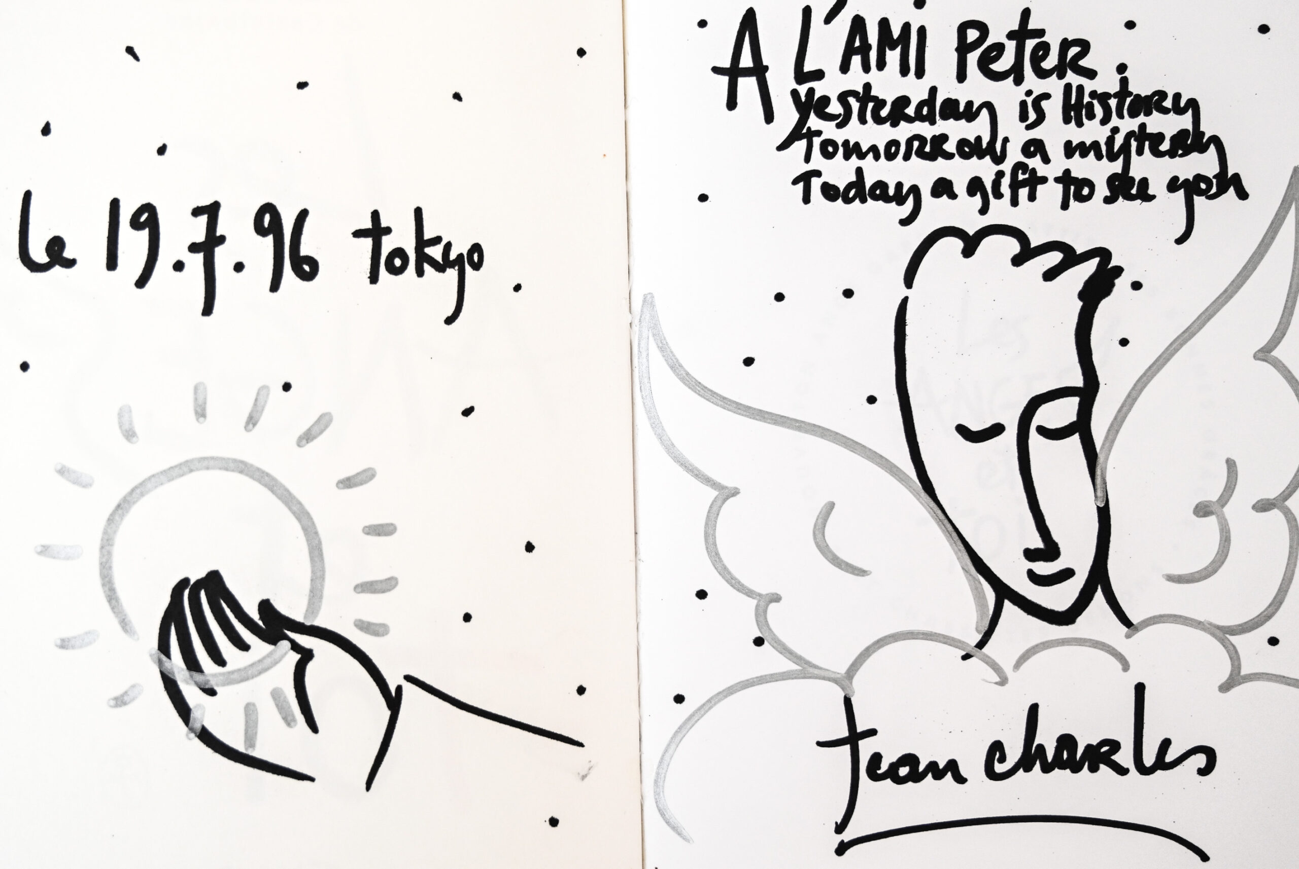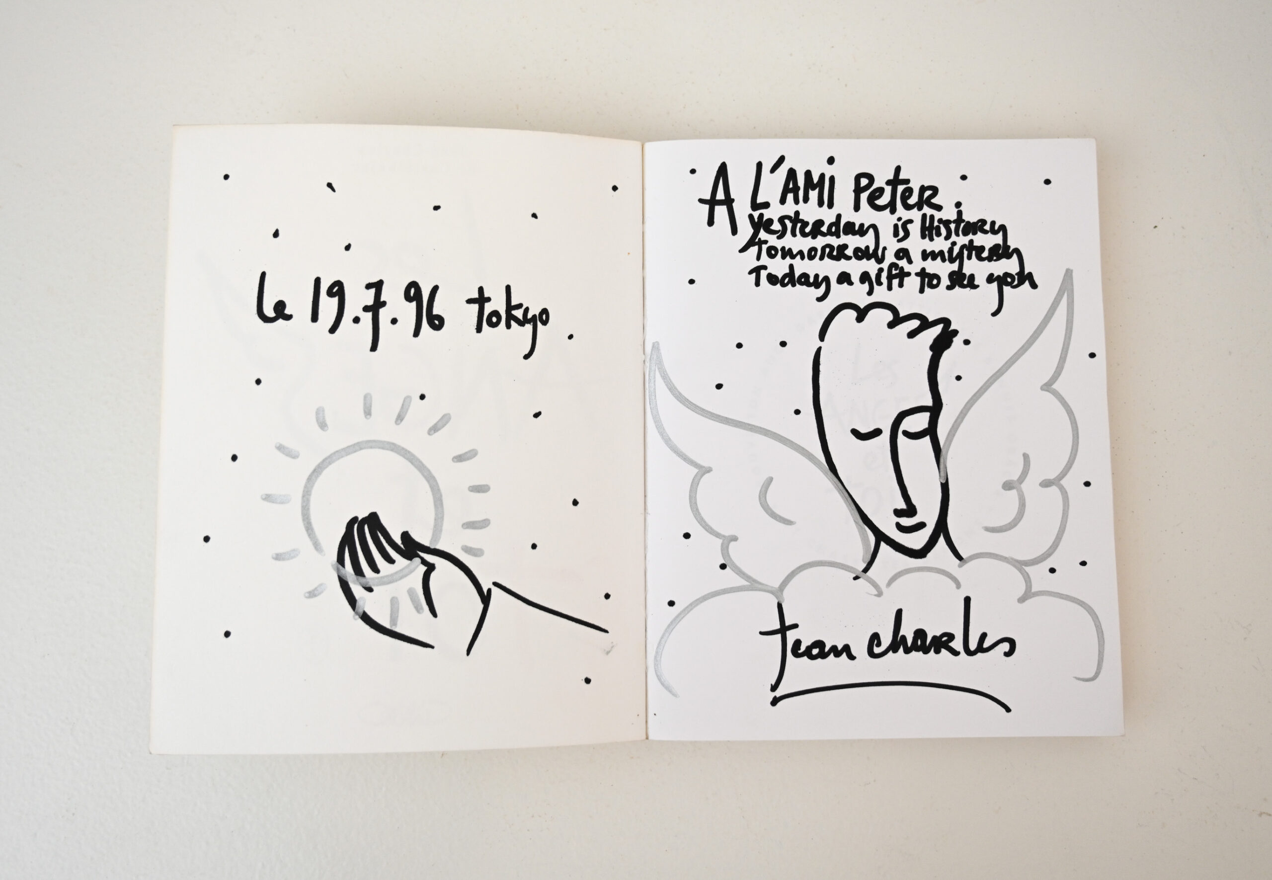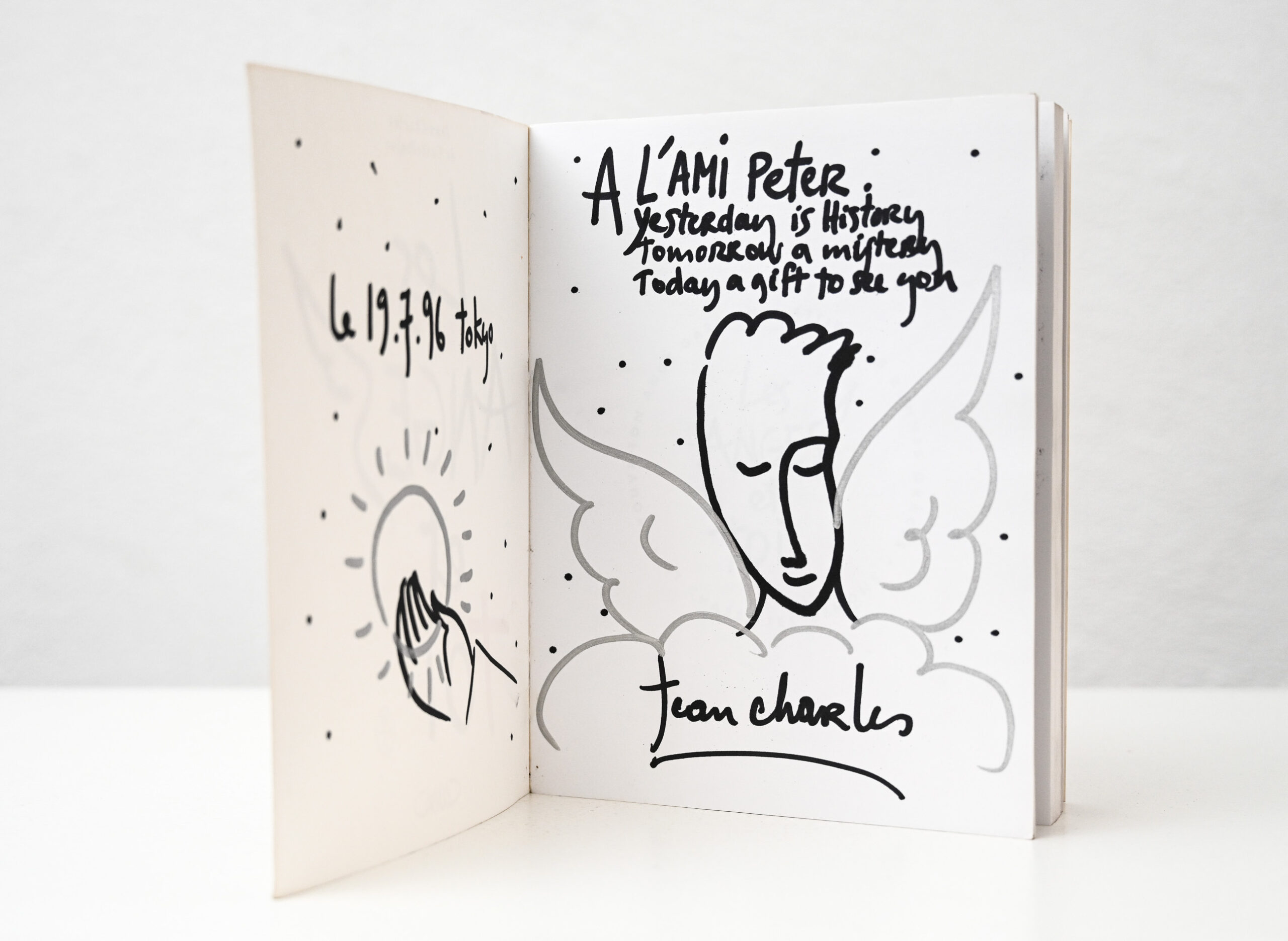 Signed and illustrated edition of Jean-Charles de Castelbajac’s book “Les anges et toi” – with an original drawing by Castelbajac and a dedication to German fashion photographer and film director Peter Lindbergh