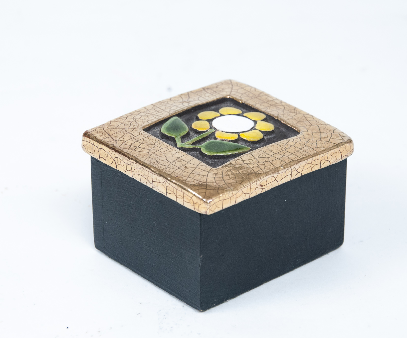 Small “petite fleur” wooden box with ceramic lid by Mithé Espelt