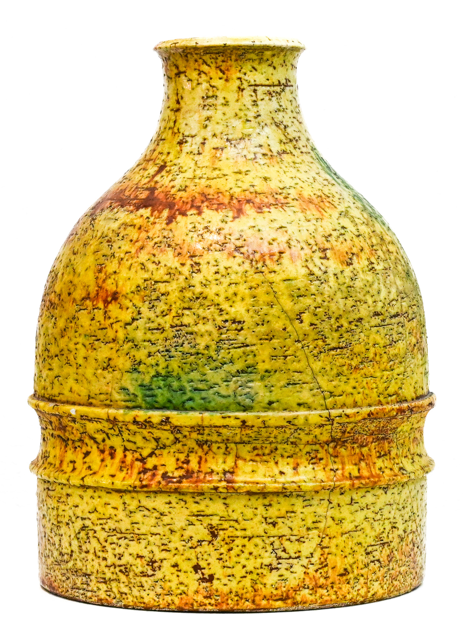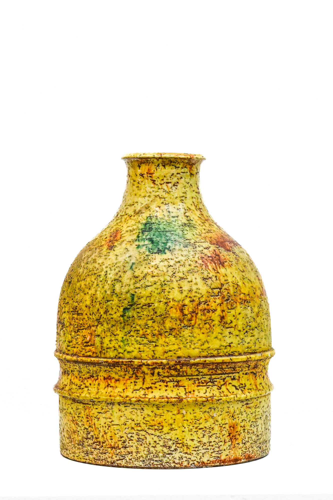 Tall yellow round vase by Marcello Fantoni (1915-2011) – Florence, Italy Signed to the base Fantoni, dated 1972.