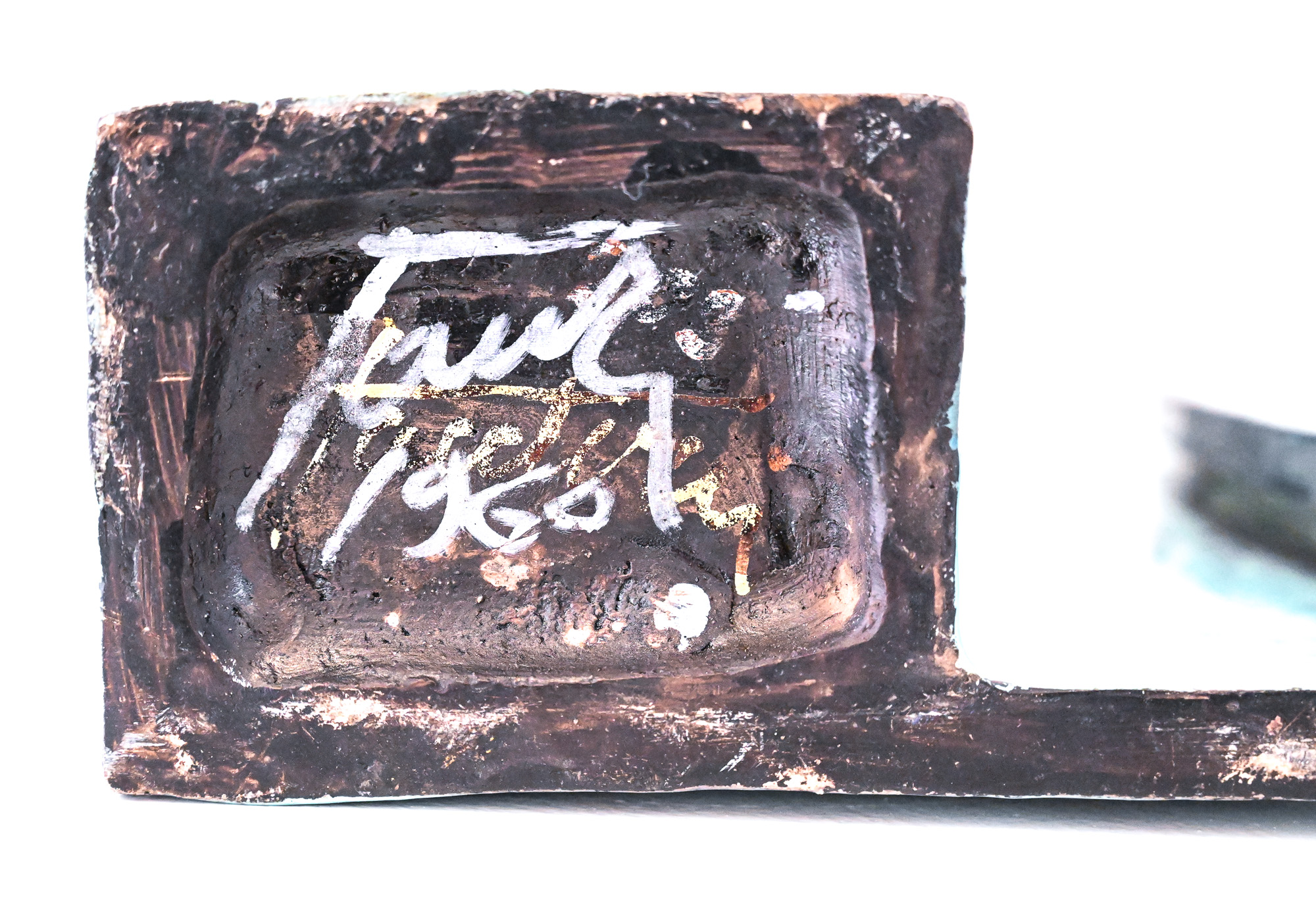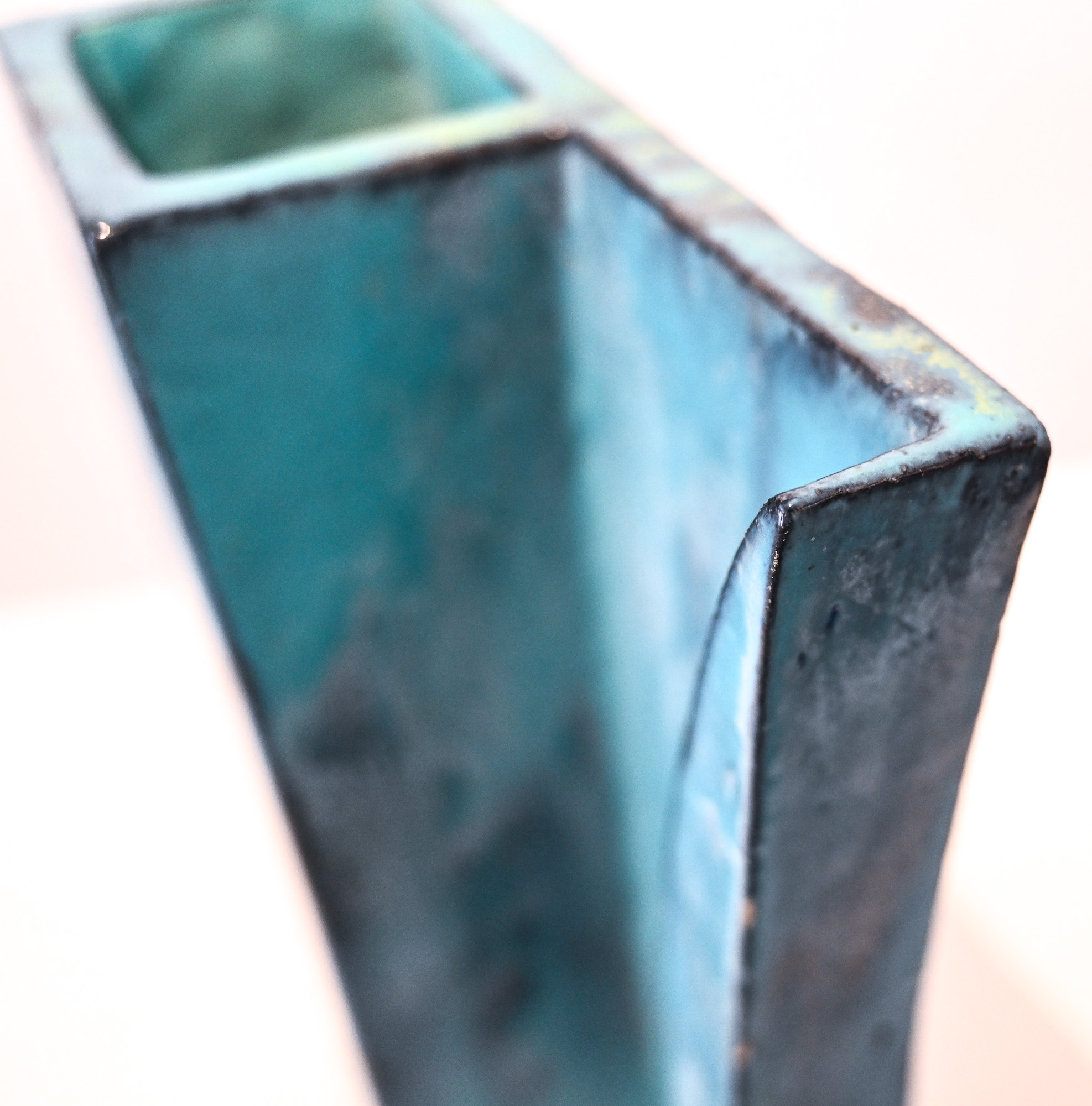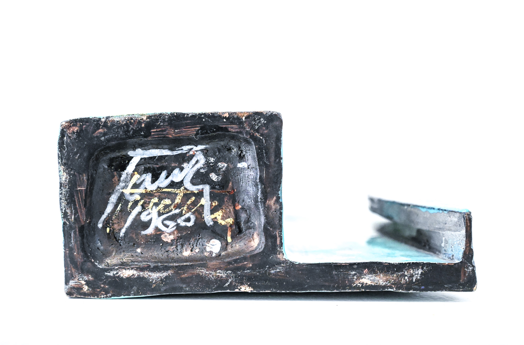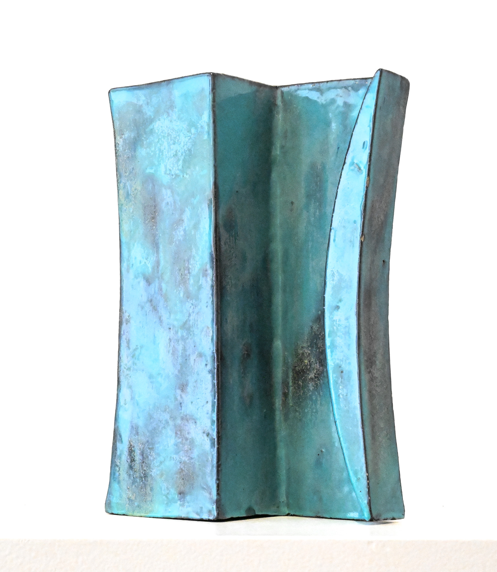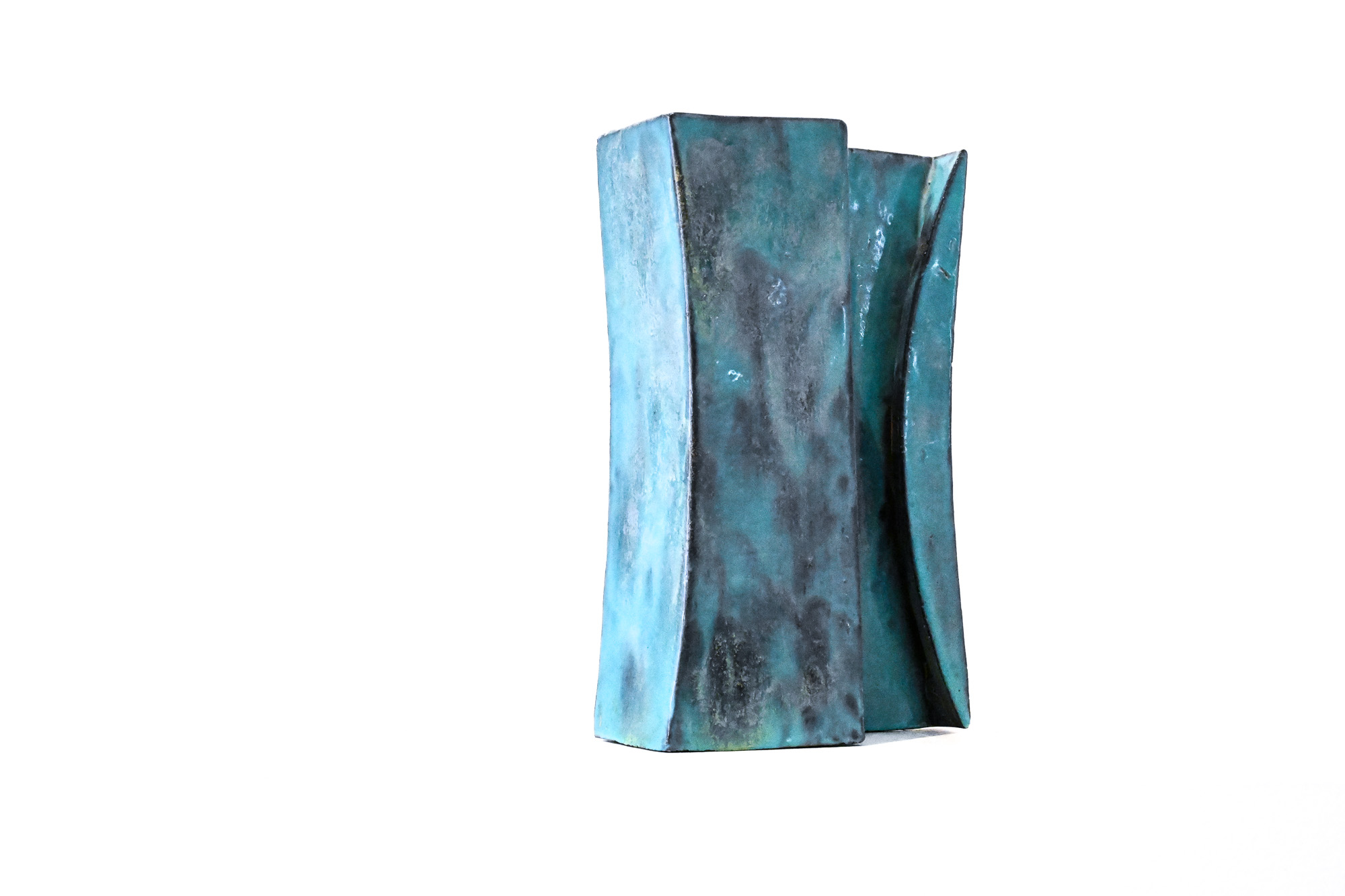 turquoise slab vase by Marcello Fantoni Italy by Marcello Fantoni (1915-2011) – Florence, Italy Signed to the base Fantoni. and dated 1960