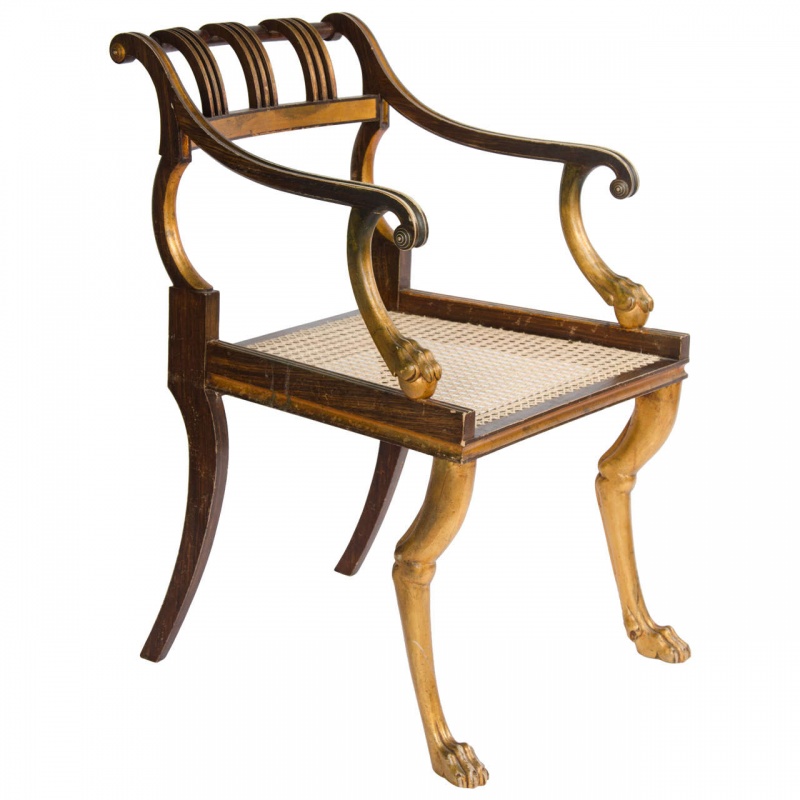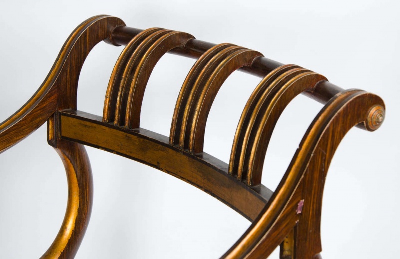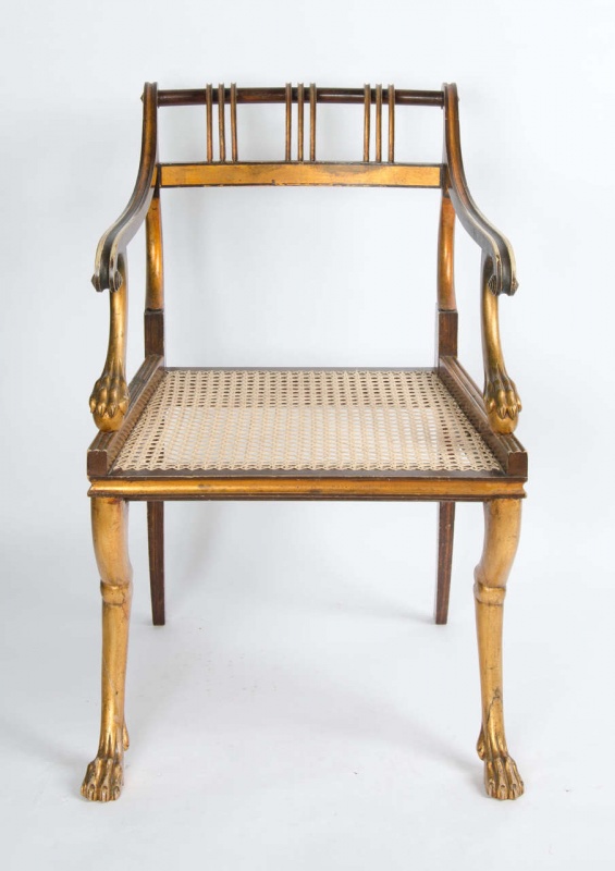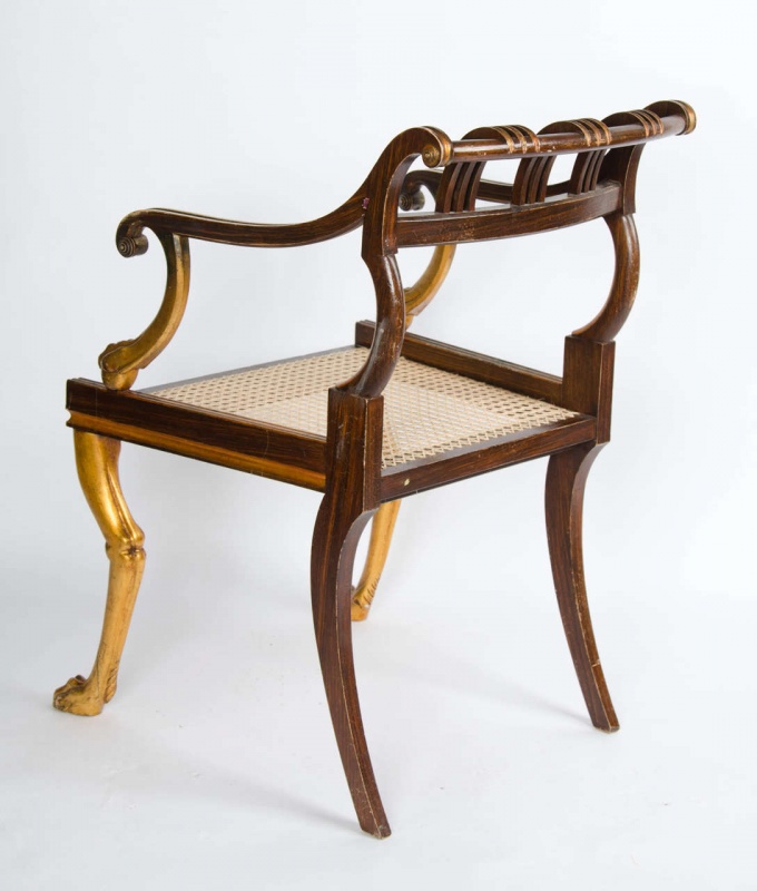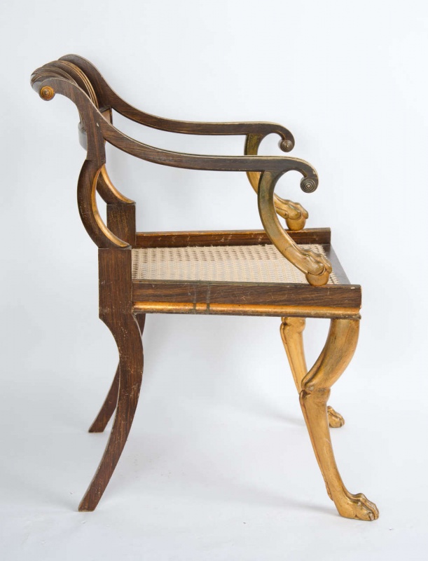 faux rosewood and gilt armchair, possibly American.